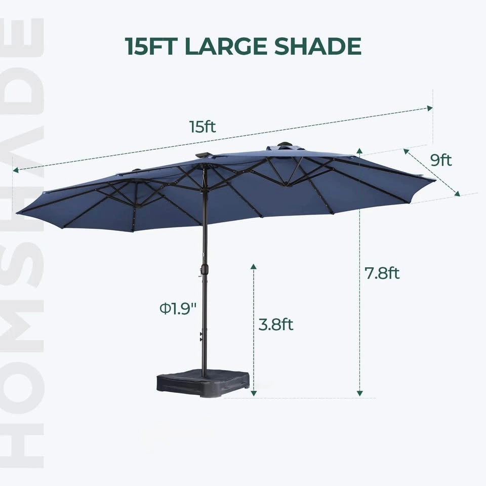 π΄ HOMSHADE 15ft Double-Sided Patio Umbrella (Navy Blue)