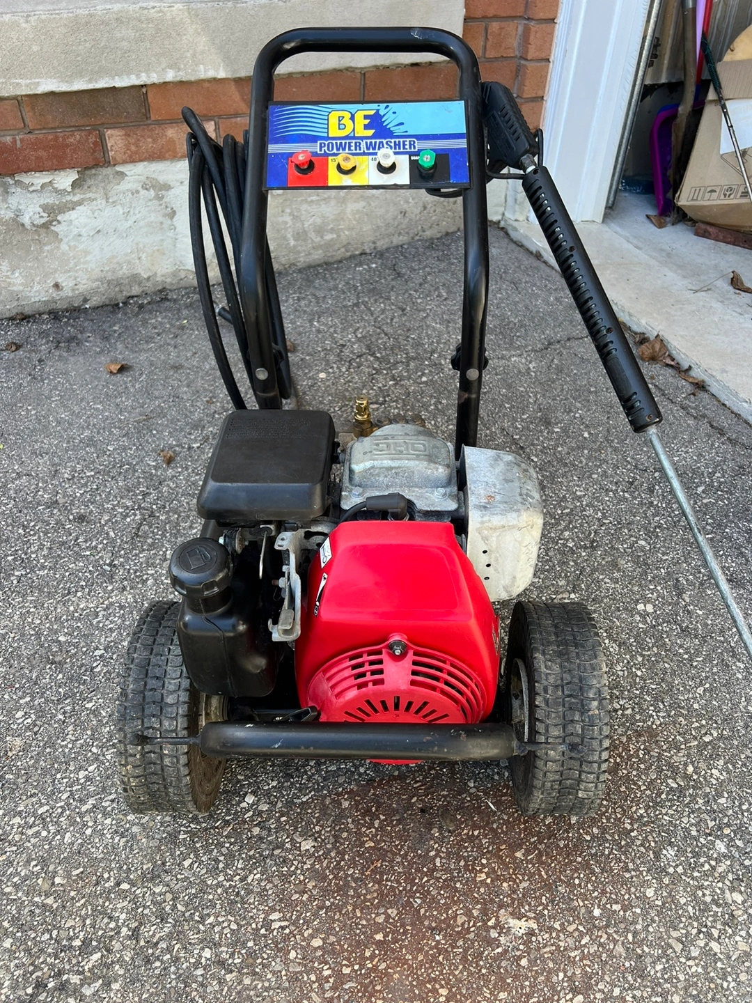 19Honda BE pressure washer used couple of times was stored for 1 year. 5hp honda gc160 engine with 2500psi 2.3gpm. Freshly serviced with new spark carb clean and oil. Comes with 30’ hose, gun and all tips.