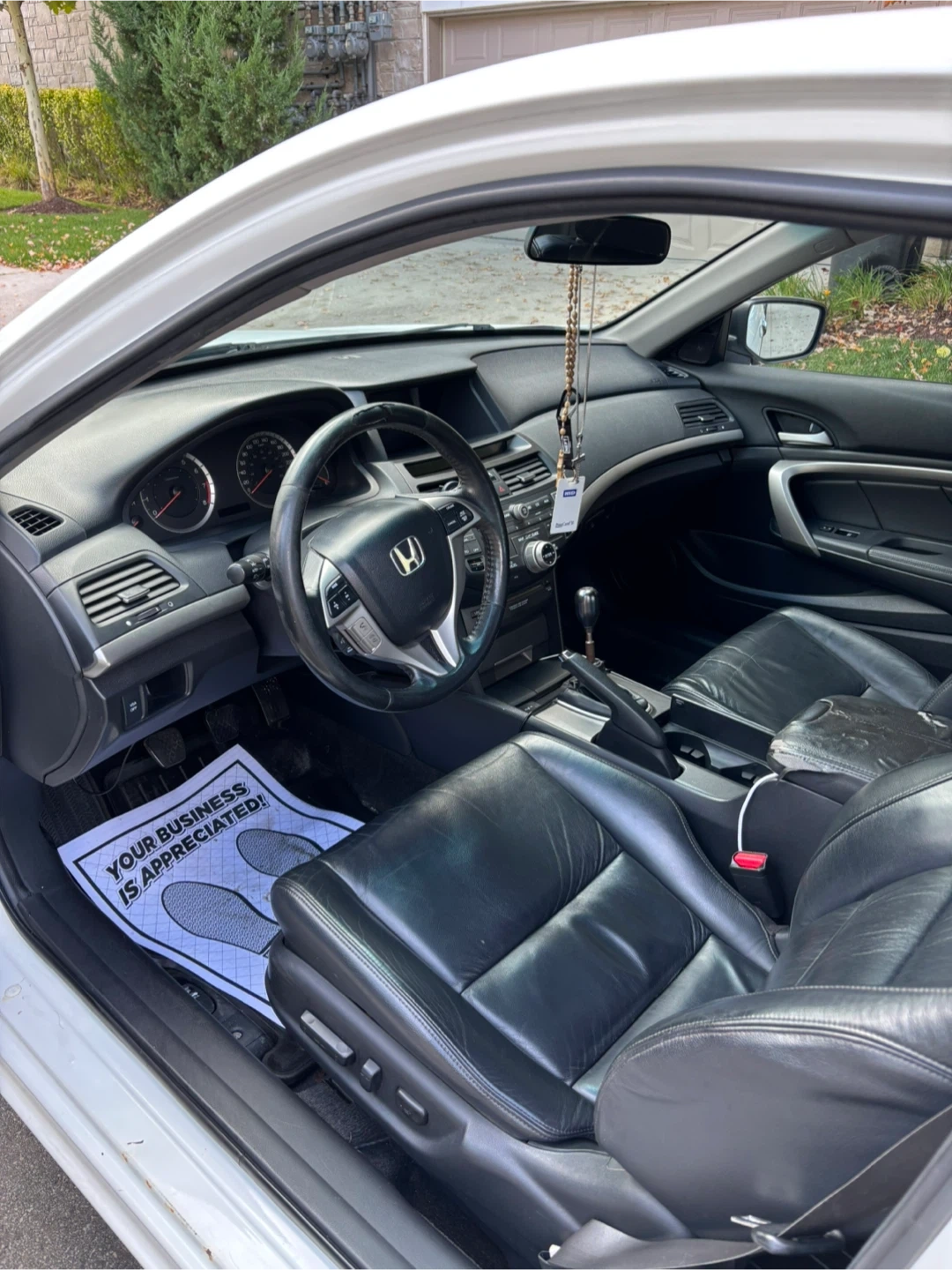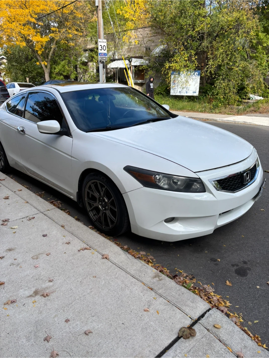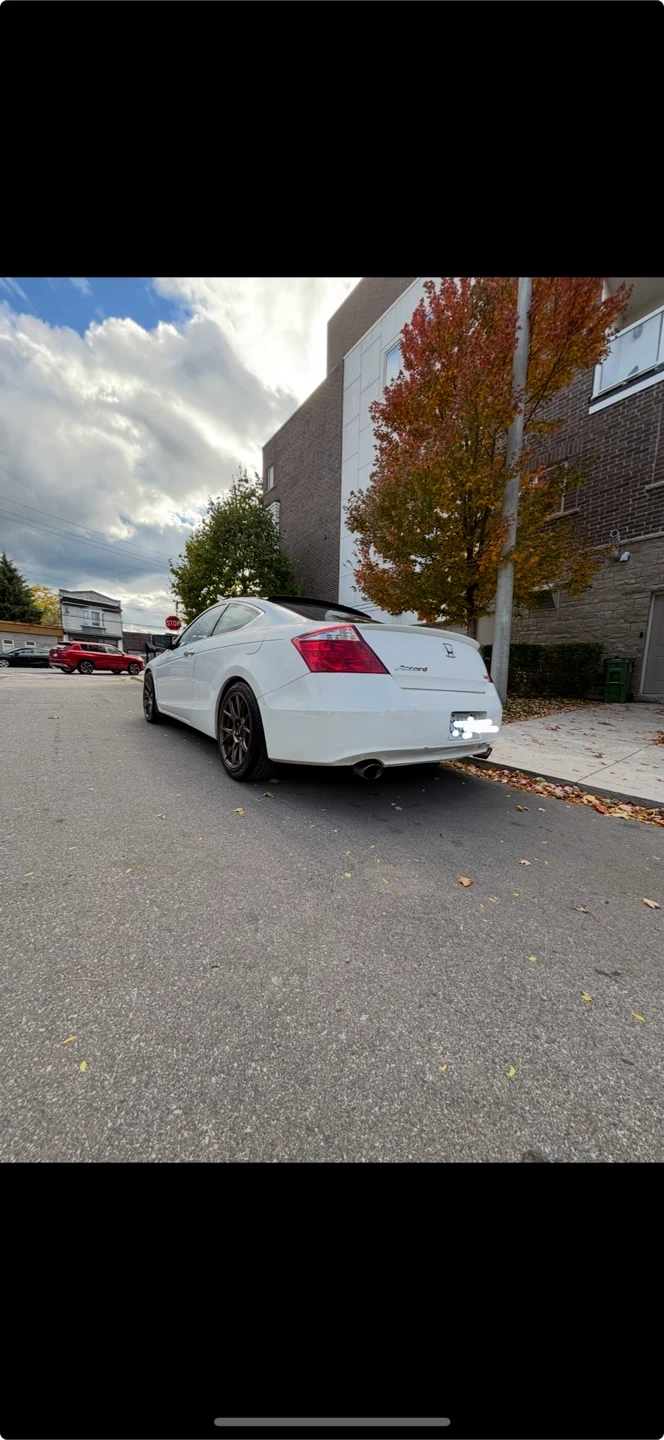 2008 Honda Accord V6 6-Speed Manual – White (Clean, Quick & Reliable) Selling my white V6 6-speed Honda Accord a fun, fast daily that’s just as practical as it is sporty. Details: Engine/Transmission: V6 with 6-speed manual — pulls strong, shifts smooth Suspension: Lowered on Tein springs (original springs included) Exhaust: Practically straight piped – sounds amazing Maintenance: Done regularly every 4,000–5,000 km Interior: Leather seats, some wear on steering wheel and center console (comes with OEM replacement leather for console) Wheels/Tires: Winters on OEM rims Summers on Konig Ampliform rims (great fit and look) Extras: New A/C pump and power steering pump (August 2025) 10-inch subwoofer included Comes with black wrap (was planning to wrap the roof) Cons (being upfront): Small rear main seal leak – doesn’t affect driving or performance Minor power steering line leak – barely noticeable This car has been my reliable daily. It’s quick, comfortable, and has the same wheelbase and interior space as the 4-door version which is the perfect mix of performance and practicality. Price: $7999 Location: Scarborough Message me if interested or for a test drive.
