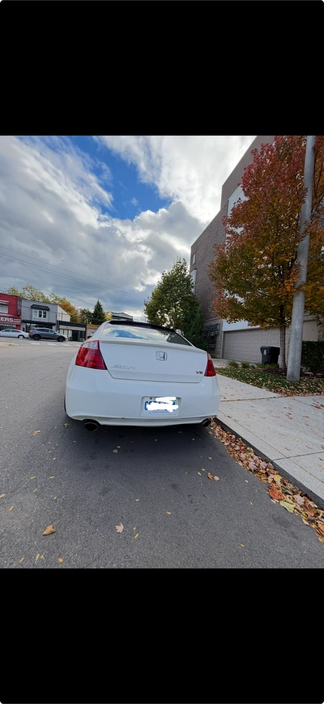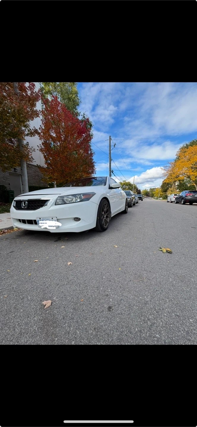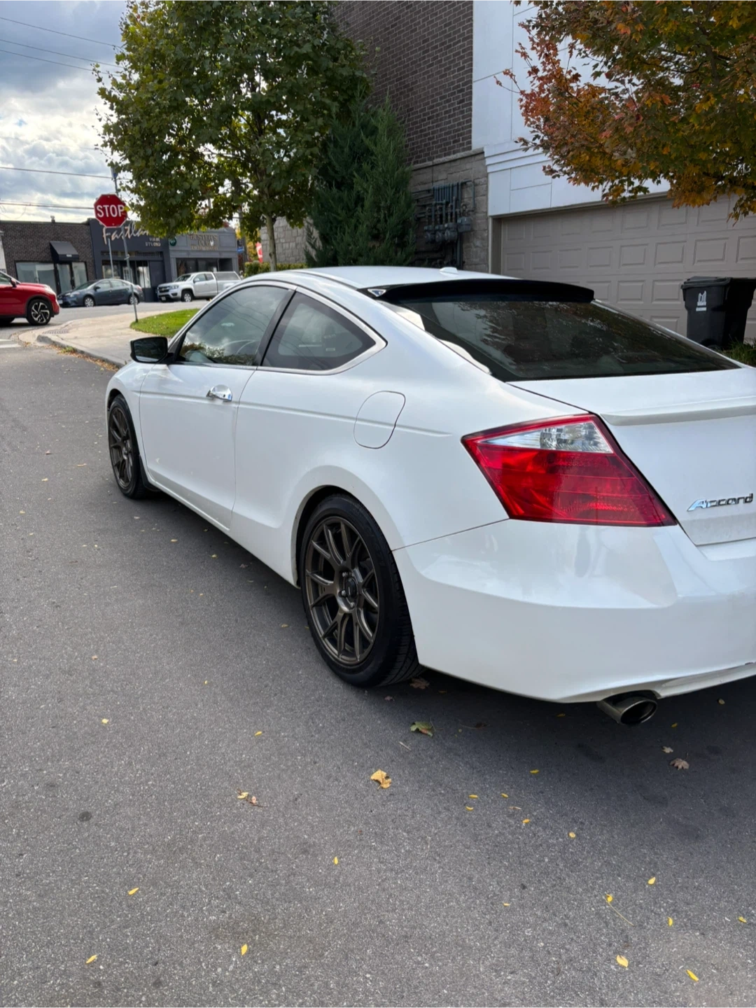 2008 Honda Accord V6 6-Speed Manual – White (Clean, Quick & Reliable) Selling my white V6 6-speed Honda Accord a fun, fast daily that’s just as practical as it is sporty. Details: Engine/Transmission: V6 with 6-speed manual — pulls strong, shifts smooth Suspension: Lowered on Tein springs (original springs included) Exhaust: Practically straight piped – sounds amazing Maintenance: Done regularly every 4,000–5,000 km Interior: Leather seats, some wear on steering wheel and center console (comes with OEM replacement leather for console) Wheels/Tires: Winters on OEM rims Summers on Konig Ampliform rims (great fit and look) Extras: New A/C pump and power steering pump (August 2025) 10-inch subwoofer included Comes with black wrap (was planning to wrap the roof) Cons (being upfront): Small rear main seal leak – doesn’t affect driving or performance Minor power steering line leak – barely noticeable This car has been my reliable daily. It’s quick, comfortable, and has the same wheelbase and interior space as the 4-door version which is the perfect mix of performance and practicality. Price: $7999 Location: Scarborough Message me if interested or for a test drive.
