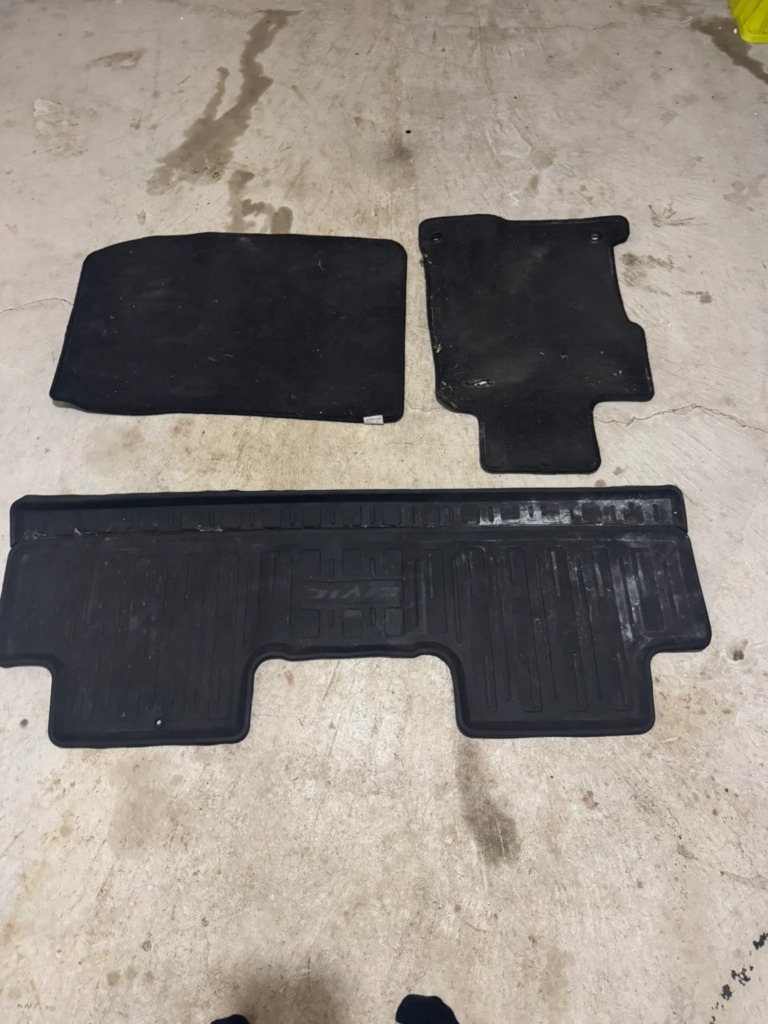 134Selling a set of black floor mats for a Honda Civic. They're in used condition, but still have plenty of life left! Perfect for protecting your car's interior from dirt and wear