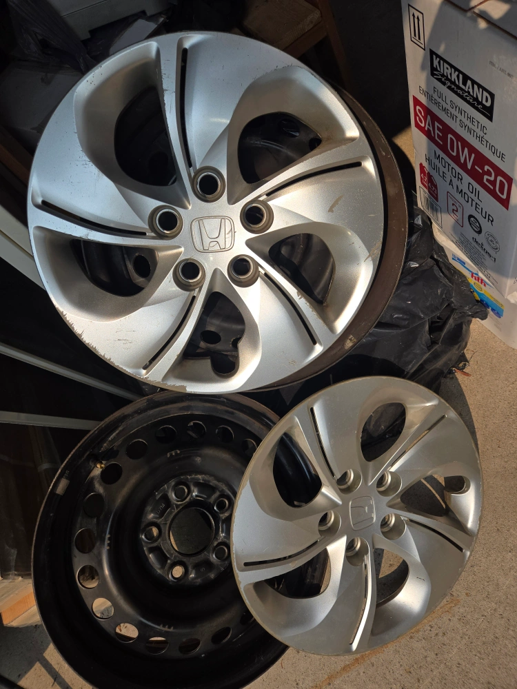 honda civic original rims (4) and tire covers (4) 15 inches $249 also have Chevrolet orginal tire covers 16 inches $45