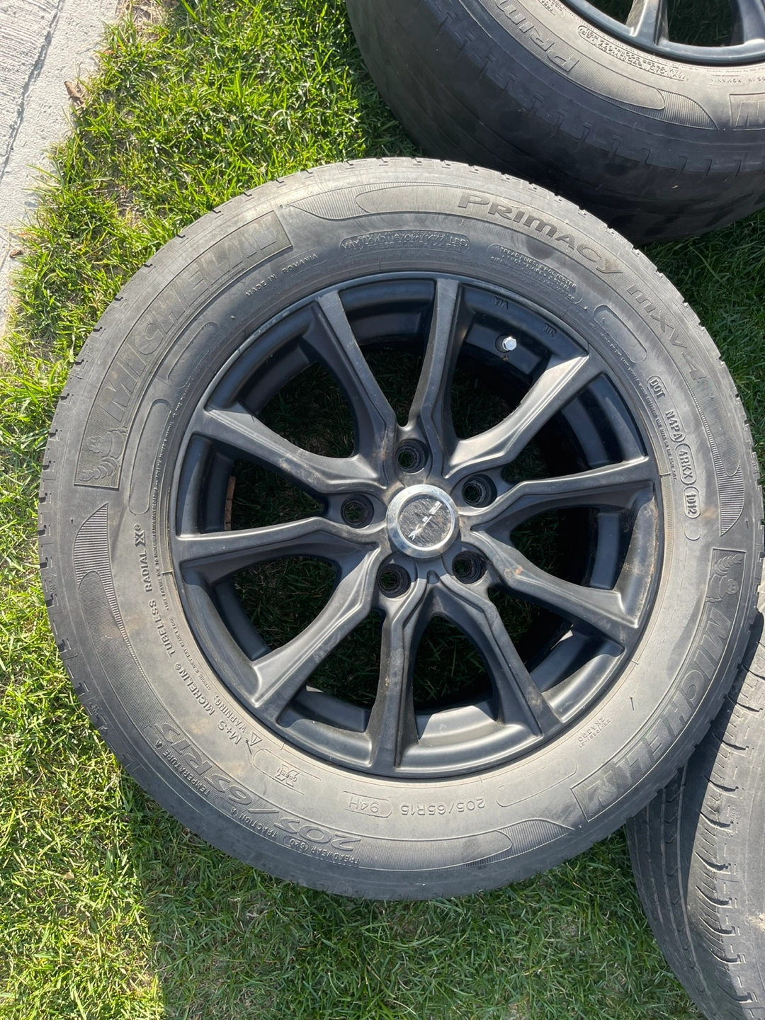 Selling a set of Honda civic rims . The size is 205/65R16. They're black and have a sporty look! Tires are not good but rims in good shape and condition