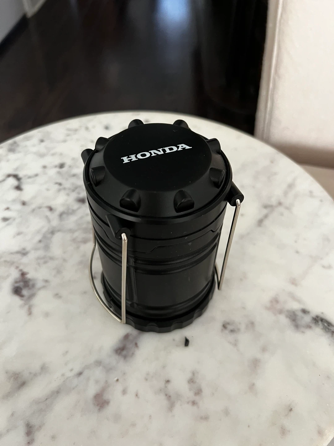 Selling a handy Honda collapsible LED camping lantern in black. It's perfect for camping or emergency lighting. It's lightweight and easy to carry. The lantern is in great condition and ready for your next adventure