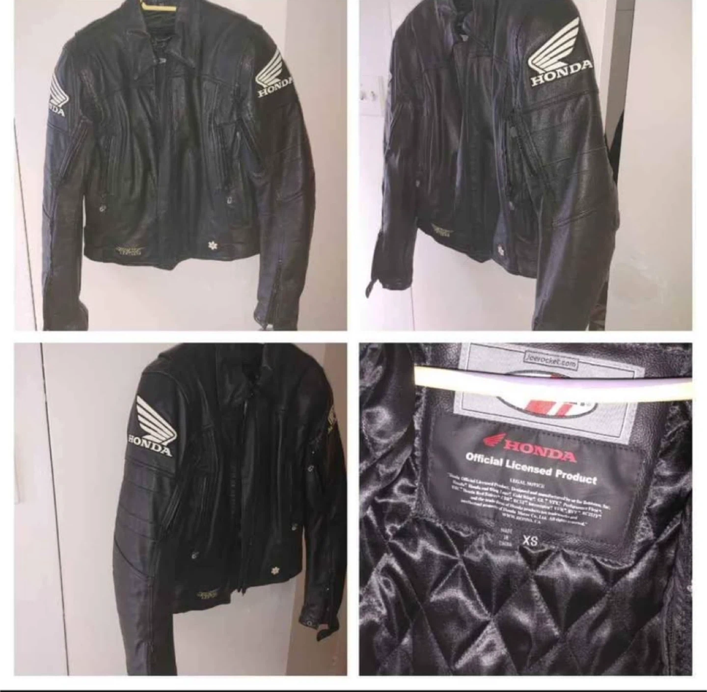 65Selling a Honda Official Licensed Product leather jacket in size XS! It's a sleek black jacket with the Honda logo prominently displayed. Perfect for any Honda enthusiast!