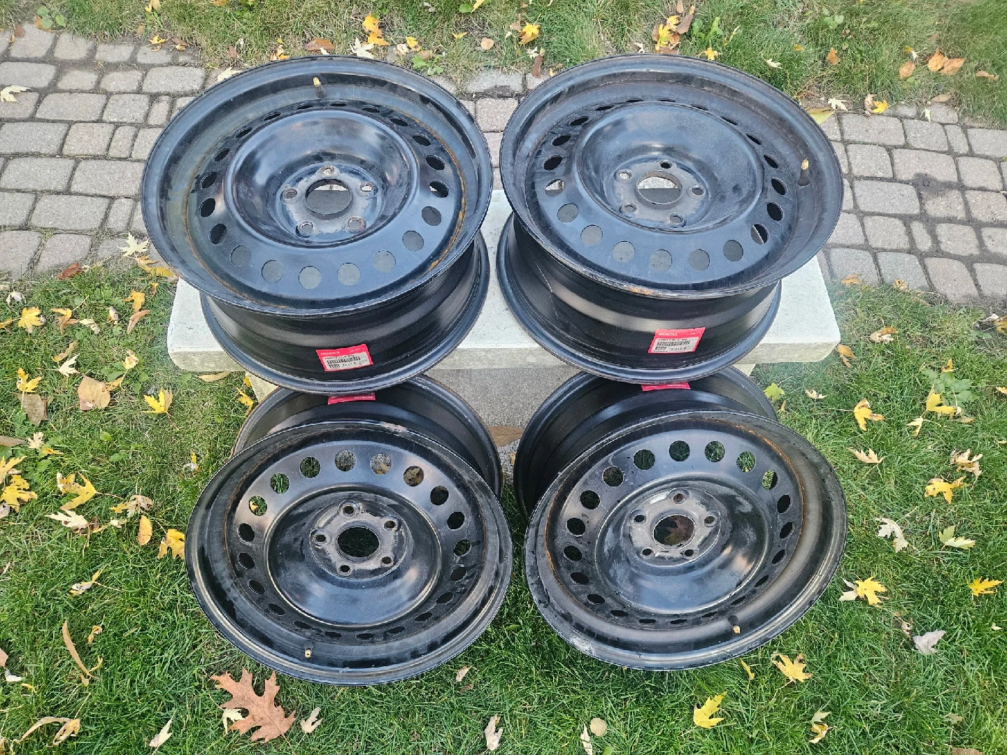 Four Honda steel rims. These are genuine Honda parts with the model number 08W17-PC4-300. All in great condition with minimal rust. Toronto Honda Parts sells these new for $130 each. 17" diameter by 7" wide. Bolt Pattern 5x114.3 Offset (mm)40 Center Bore (mm)64.1 Pick up near Kingston and St. Clair