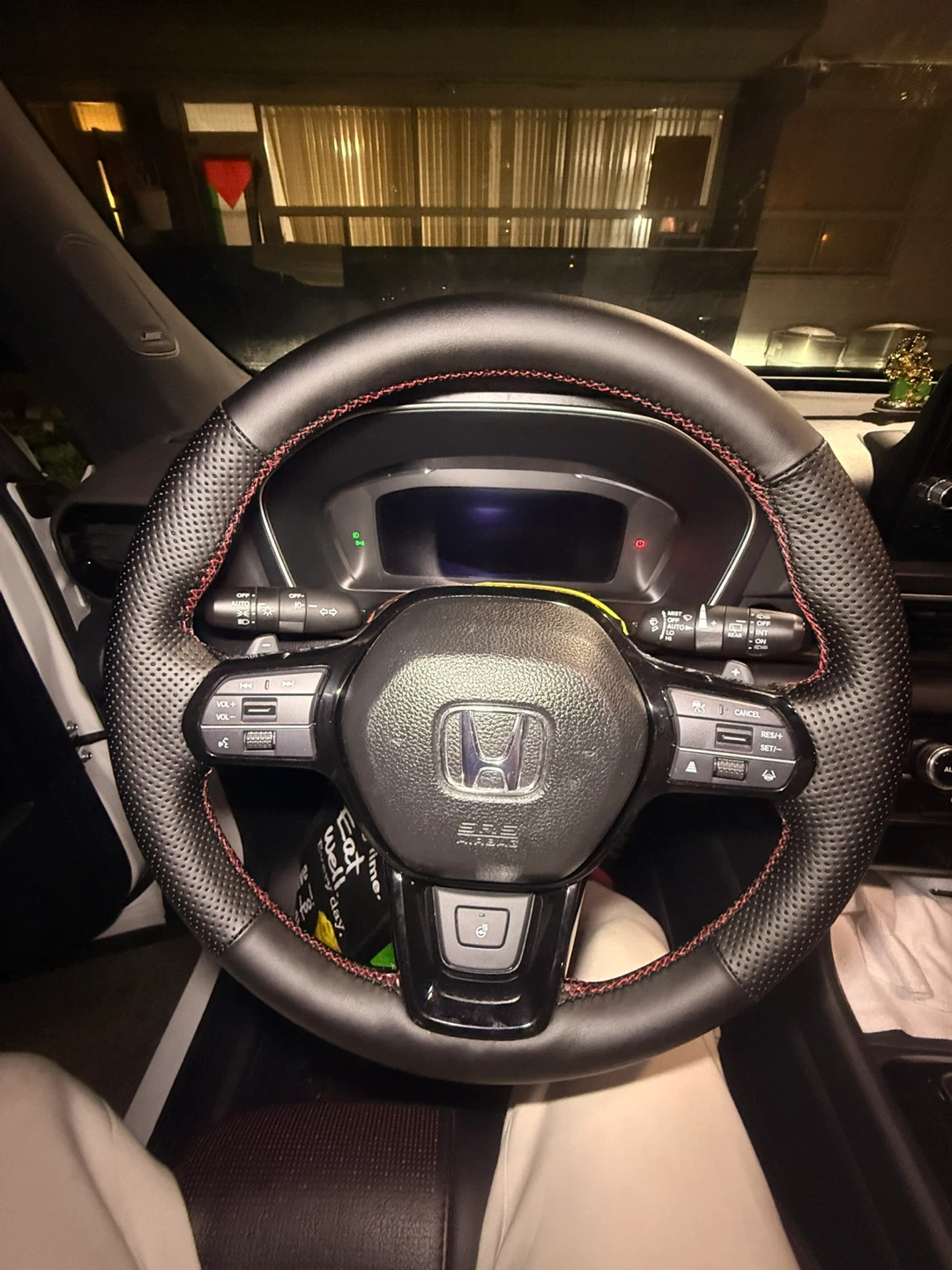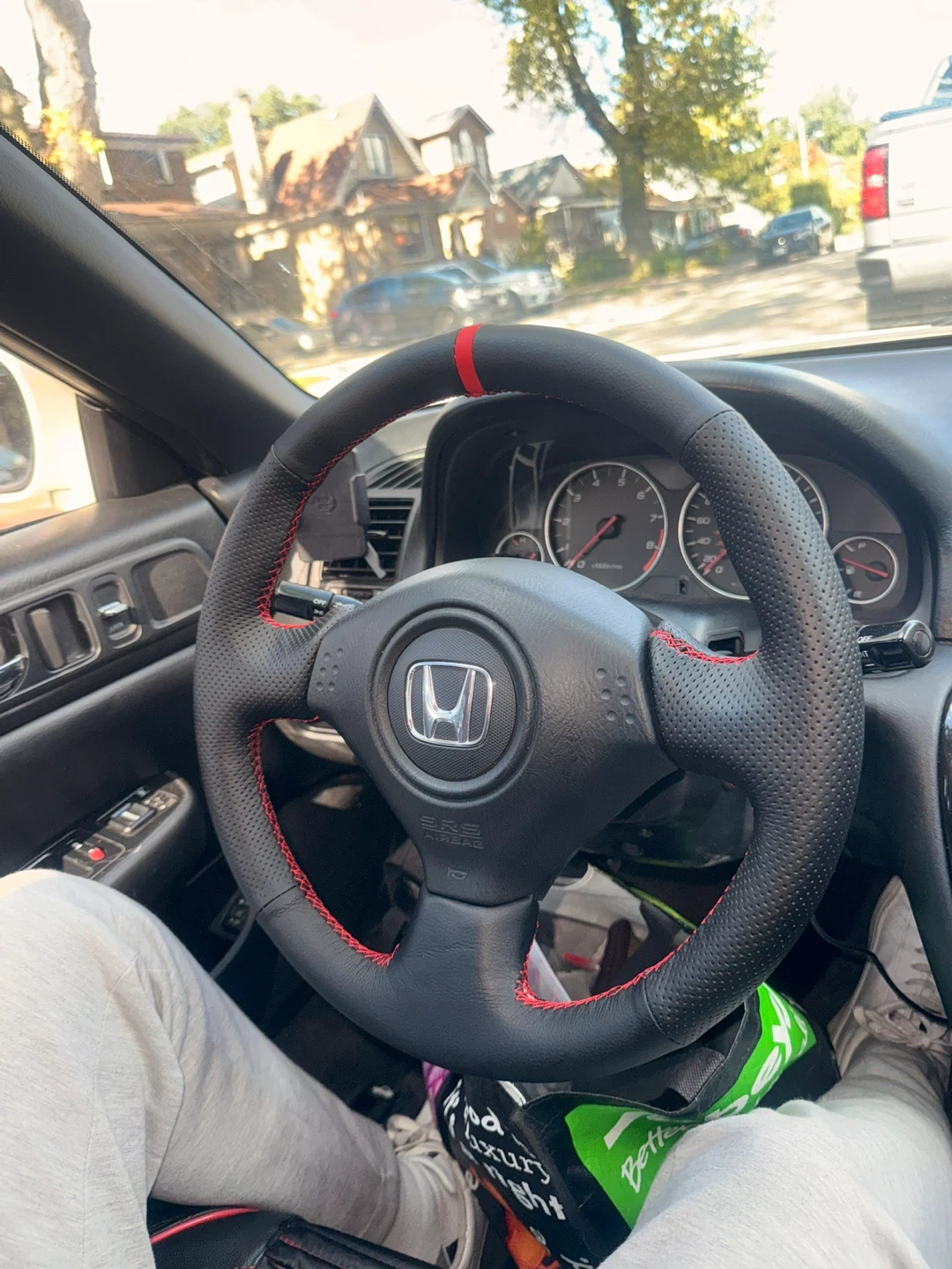 Selling a steering wheel cover for a Honda. It's black with red stitching. Pick up as is $50 Installation and stitching $120-140