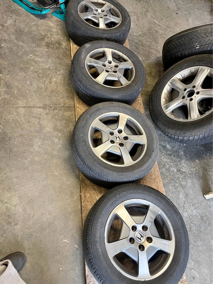 Honda rims with tires. Tires have probably one summer left. The rims came off my own car that broke down. 215/60/16