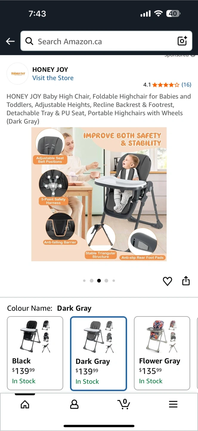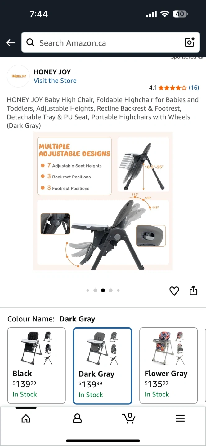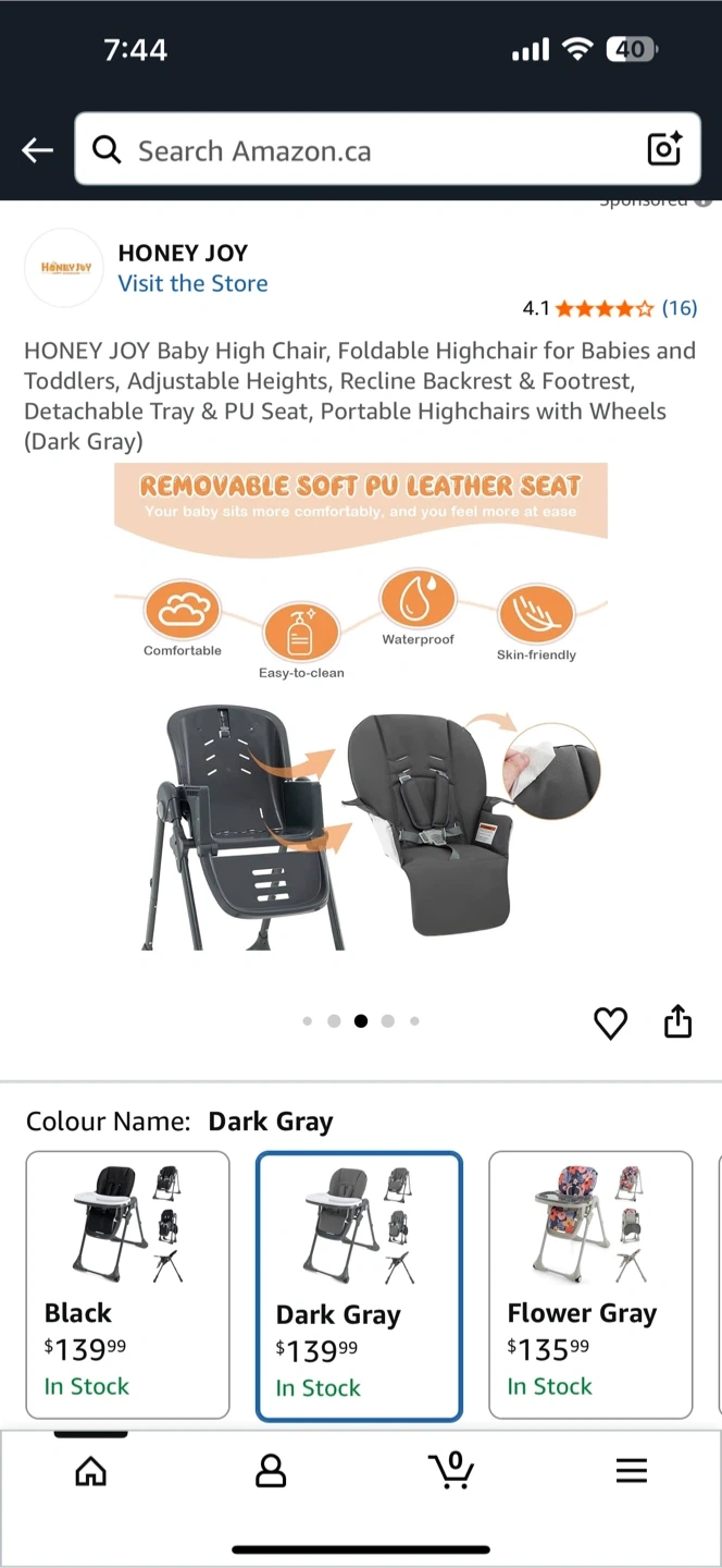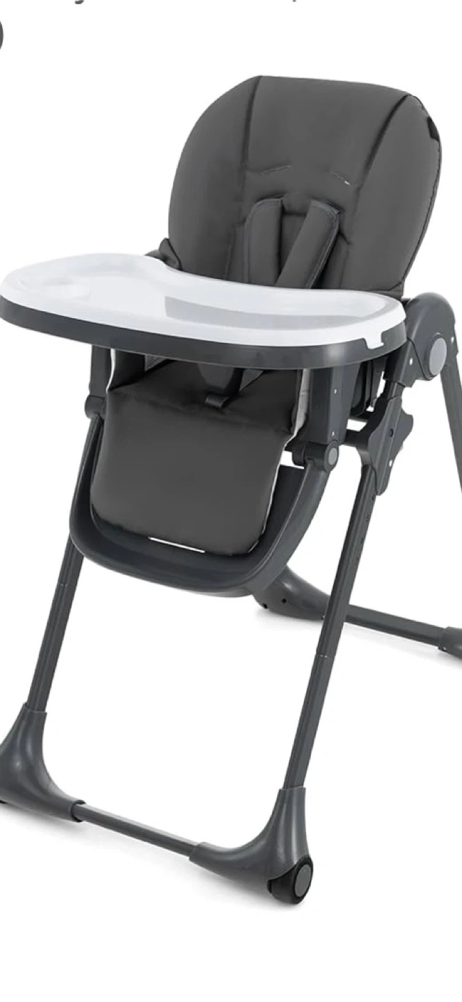 56Selling a HONEY JOY baby high chair in dark gray! This foldable highchair is perfect for babies and toddlers. It features a detachable tray and PU seat, and it's portable with wheels. The highchair also has adjustable heights, a reclining backrest and footrest, and a double food tray for eating and playing. It's easy to clean and has a cup holder! Originally bought for $139.99