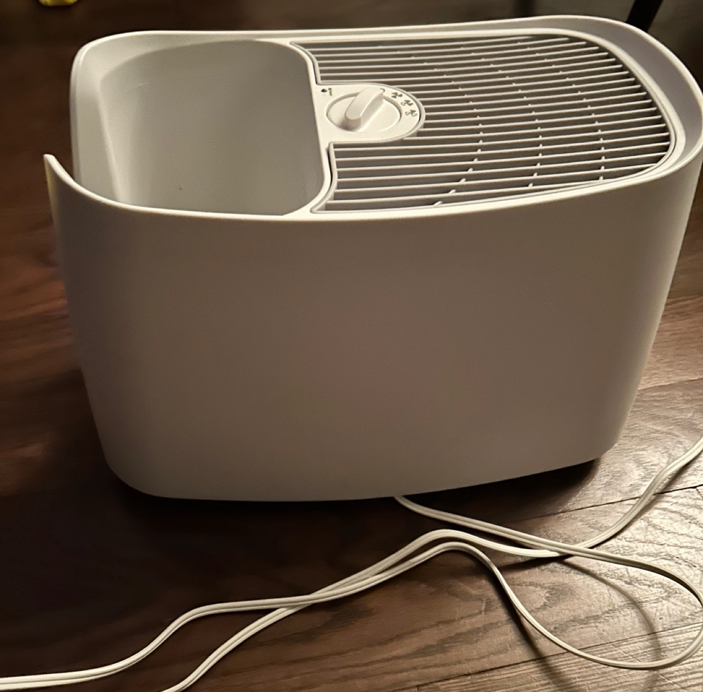 Gently Used Honeywell humidifier. Cool mist. Large water tank. Easy to use. Includes power cord. Cool Invisible Moisture] This ultra-quiet, evaporative humidifier provides cool invisible moisture It features QuietCare technology that is 30% quieter than similar humidifiers, adjustable moisture output settings, break-resistant water tank and wicking filter capturing minerals from the water. Dimensions: 17.48" L x 9.37" W x 11.85" H (44.32 x 23.79 x 30.09 cm) [Capacity] 1-gallon (3.79-litre) tank capacity features a wide opening that's easy to fill and clean. An ideal fit for medium sized room, it is capable of running up to 24 uninterrupted hours per filling. Works with (Smart Home): No [Humidifiers for Babies, Children, Adults] Many find that a humidifier for the home, bedroom or nursery is an essential part of a good night’s sleep when the air is dry, in allergy season, or when sick [Replacement Filter] For best performance, replace your filter with genuine certified Honeywell Replacement Filters "A", model HAC504PFC every 1 - 2 months [Most Trusted Brand] Voted most trusted Humidifier brand by Canadian shoppers based on the BrandSpark Canadian Trust Study, years 2019 to 2022