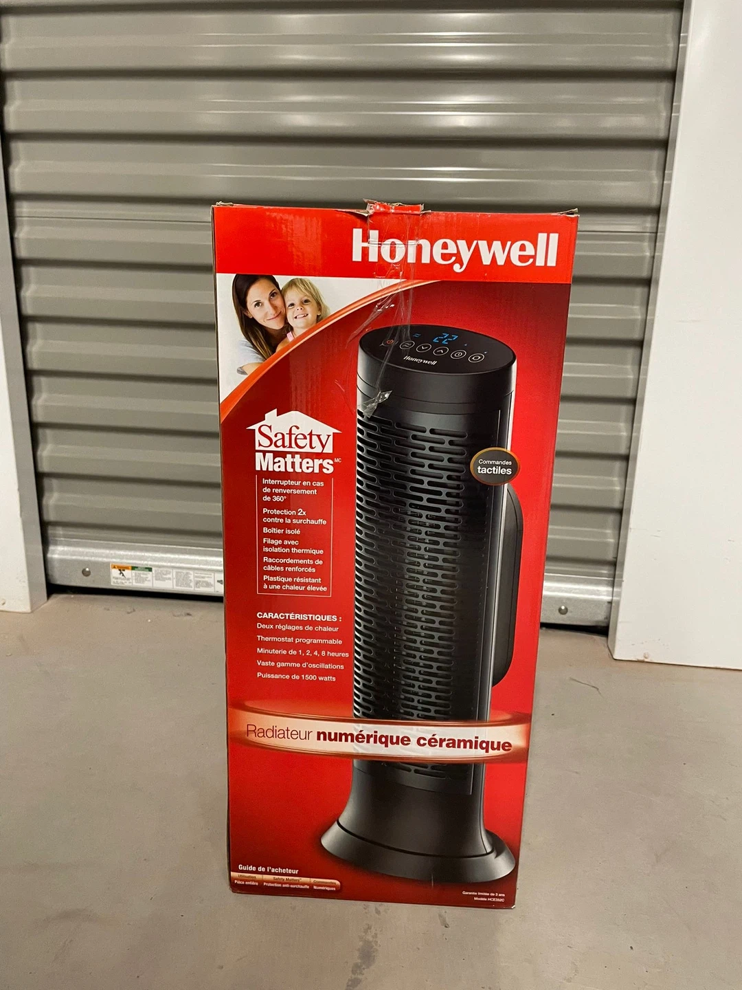 44I'm selling a brand new Honeywell Digital Ceramic Heater, still in its original box! It's perfect for adding some extra warmth to a room. Key features include: - 360° Tip-over switch automatically shuts heater off if tipped over in any direction - 2x Overheat protection - Cool-touch housing - Two heat settings - Programmable thermostat with 1, 2, 4, 8 hour timer settings - Oscillates for wider distribution of heat - 1500 watt ceramic element