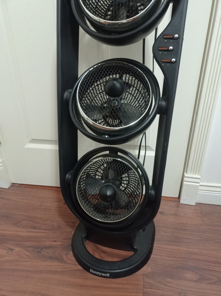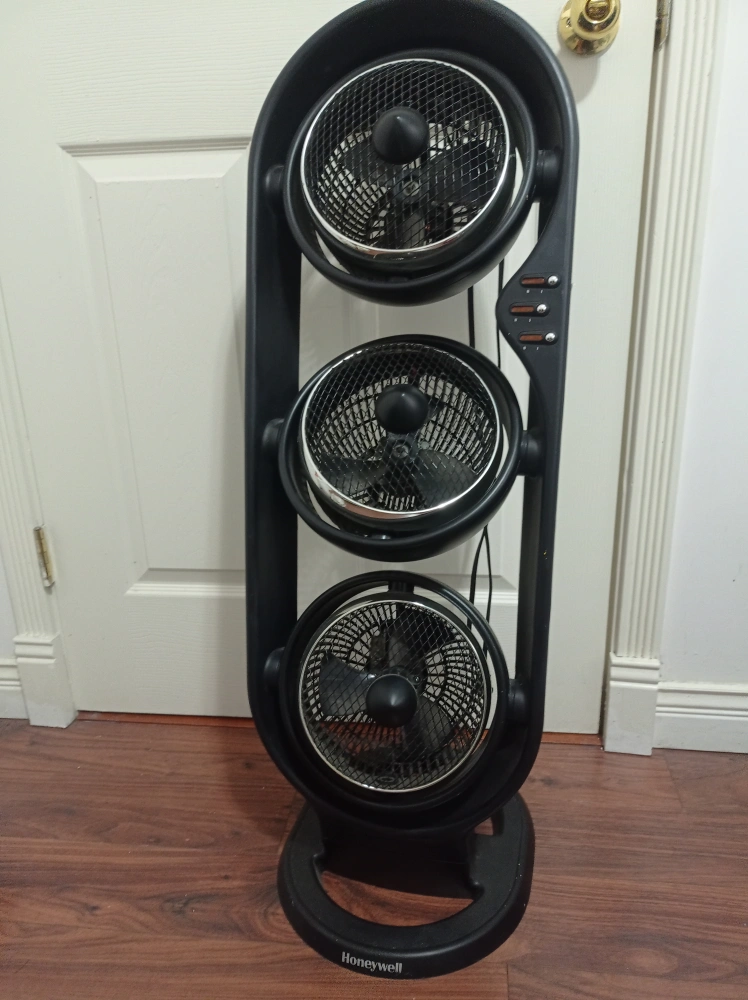 This is a three fan tower unit with individual speed control for each fan. It is made by Honeywell. like new just need little bit cleaning and this is like new