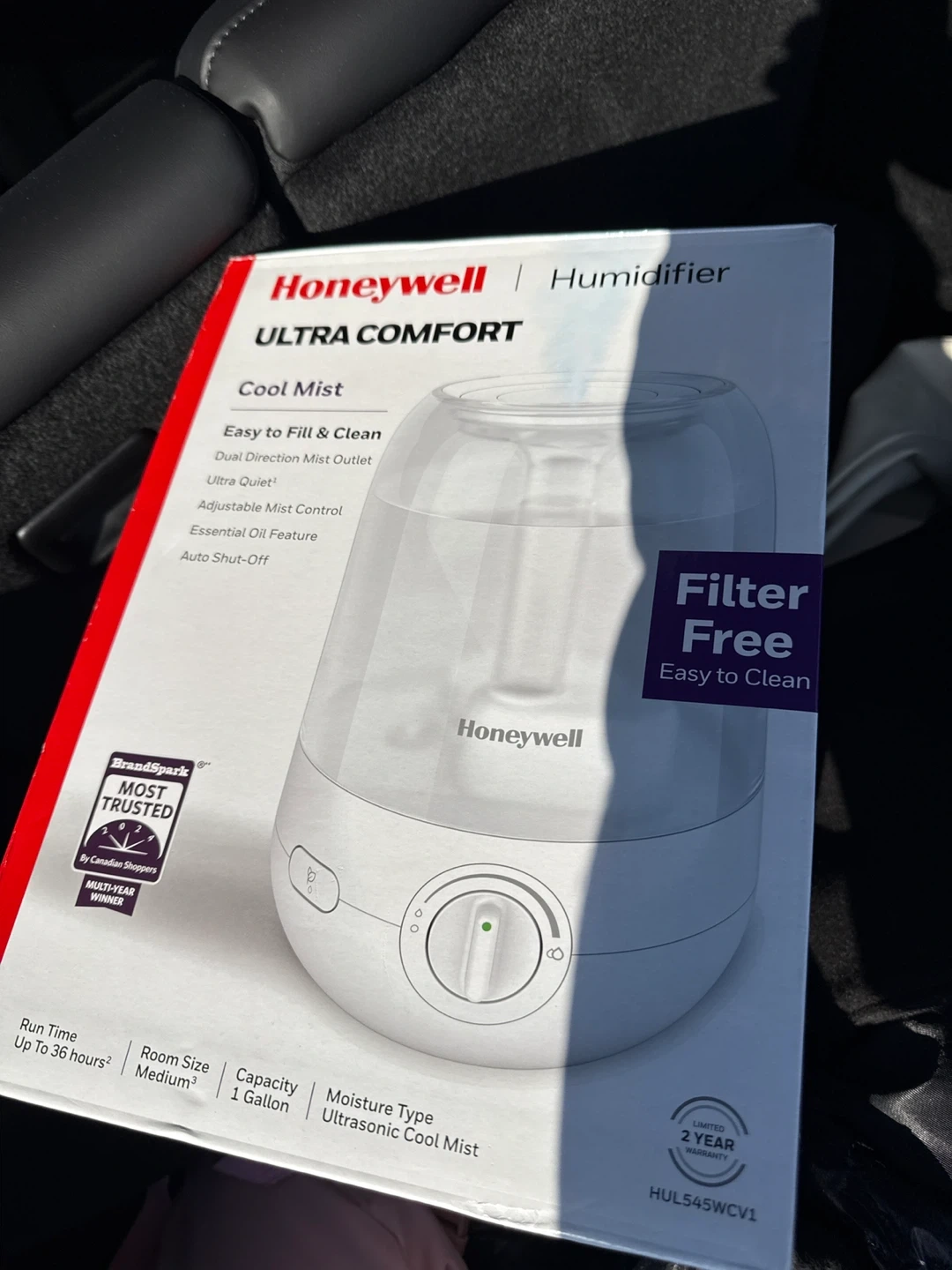 Selling a Honeywell Ultra Comfort Cool Mist Humidifier! It's easy to fill and clean, with a dual-direction mist outlet. It features adjustable mist control and an essential oil feature. Plus, it has an auto shut-off function! It can run for up to 36 hours and is suitable for a medium-sized room. It has a 1-gallon capacity and uses ultrasonic cool mist technology. The model number is HUL545WCV1