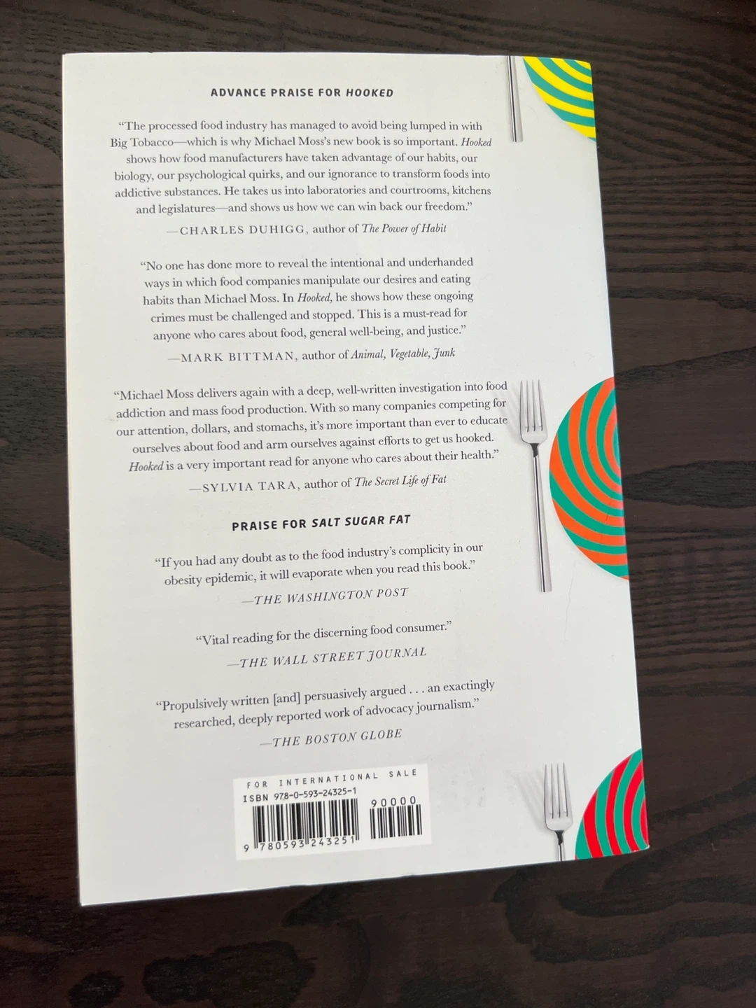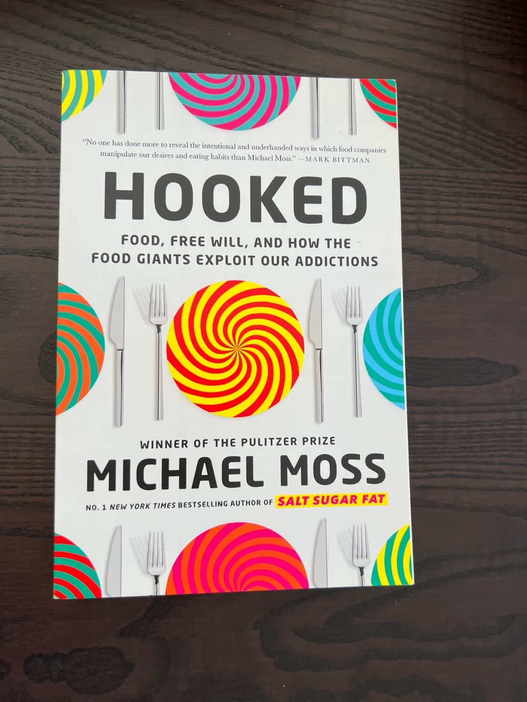 Selling the book "Hooked: Food, Free Will, and How the Food Giants Exploit Our Addictions" by Michael Moss! It's a fascinating read about the food industry and its impact on our habits