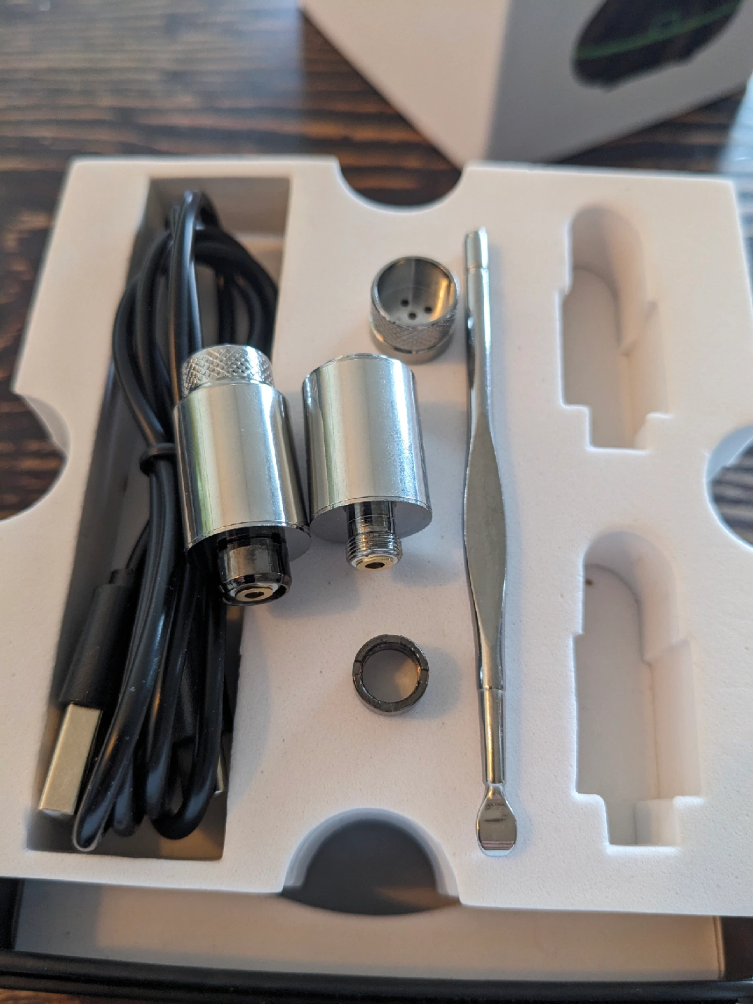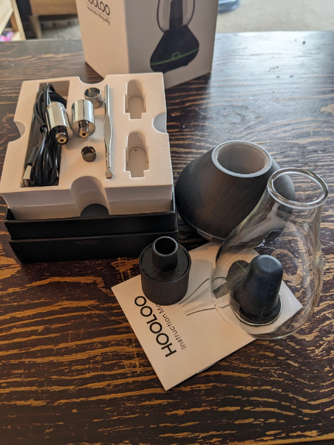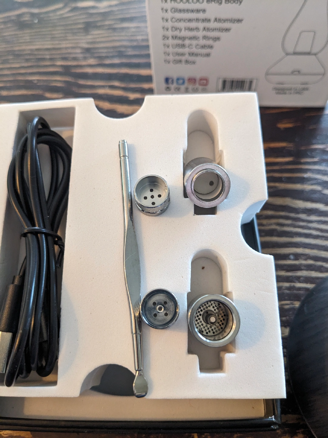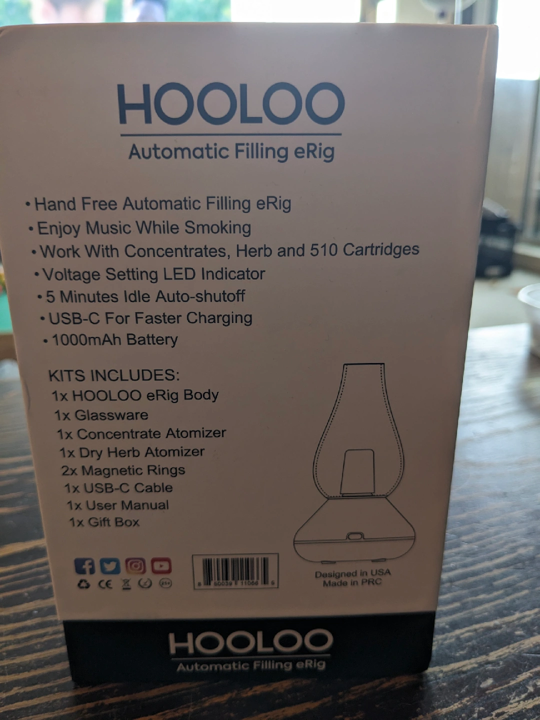 252HOOLOO Automatic Filling eRig Comes with the original box only used once with 510 cartridge Price negotiable Kit includes: - HOOLOO eRig Body (Bluetooth for music!) - Glassware - Concentrate Atomizer - Dry Herb Atomizer - Magnetic Rings - USB-C Cable - User Manual - Gift Box It features hand-free automatic filling, allows you to enjoy music while smoking, and works with concentrates, herb, and 510 cartridges. It also has a voltage setting LED indicator, 5-minute idle auto-shutoff, USB-C for faster charging, and a 1000mAh battery