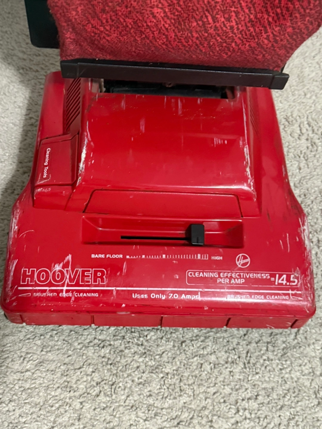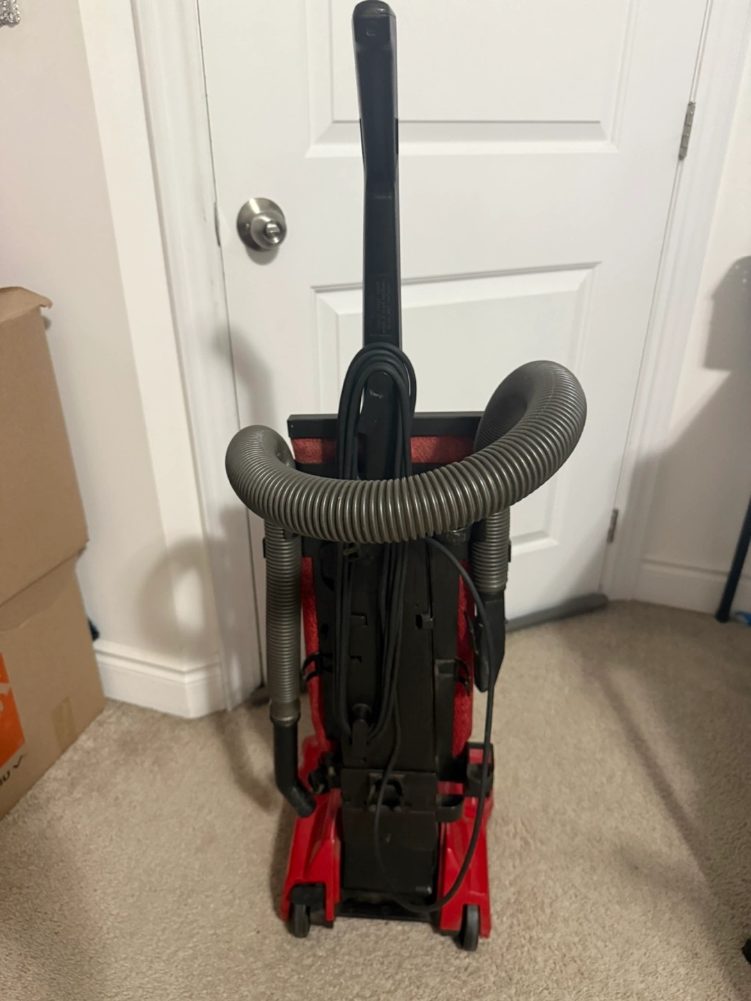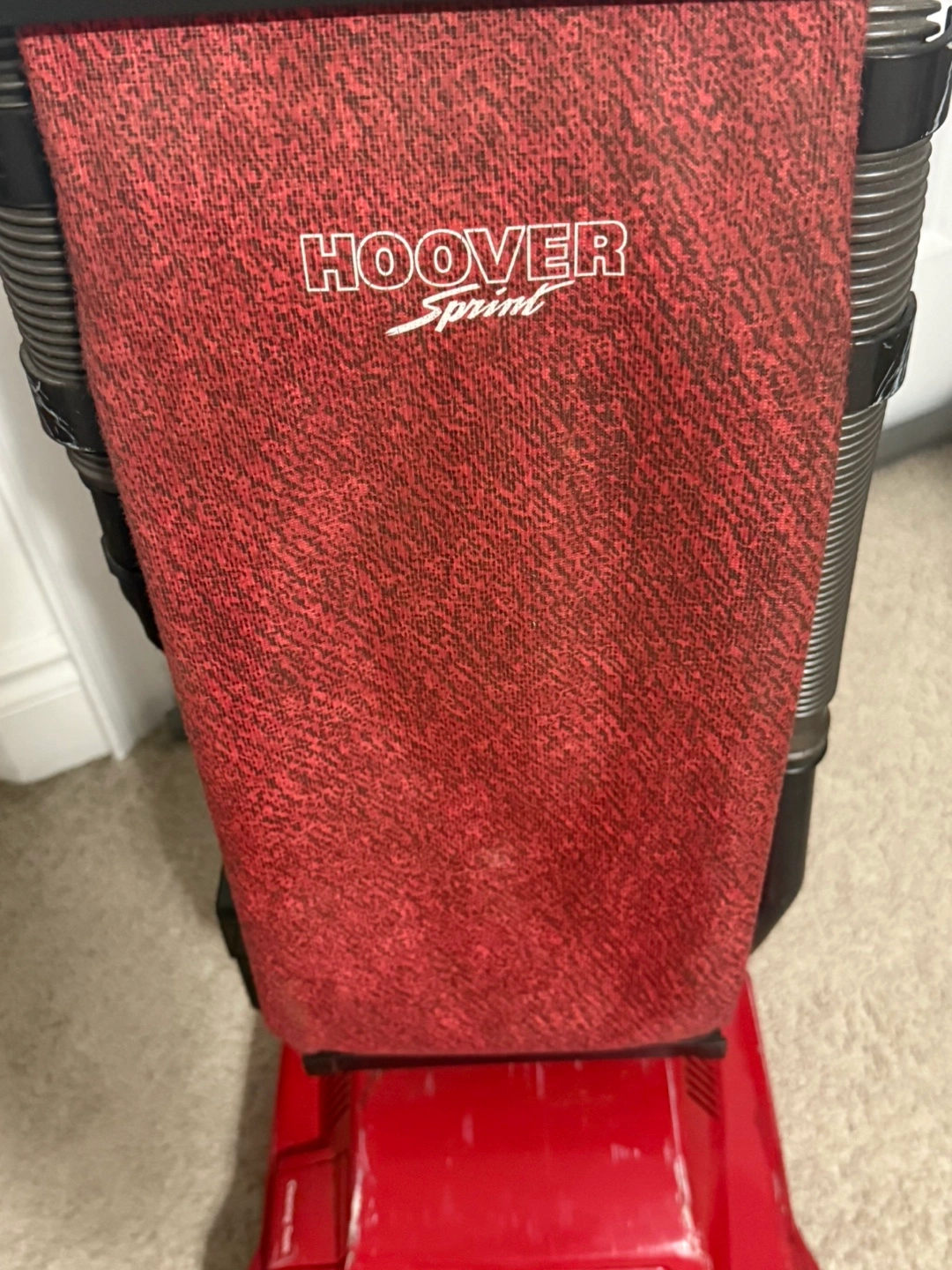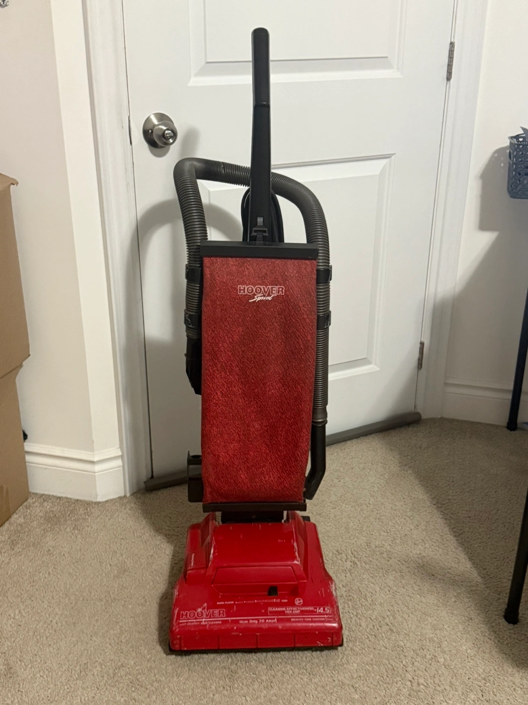Selling a used Hoover Sprint vacuum cleaner. It's red and shows signs of wear, but it's still functional. Great for quick cleanups! Got it from marketplace recently used once it’s really loud but still works!!