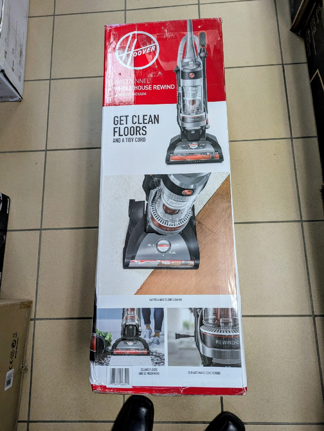 65Selling a brand new, in-box Hoover WindTunnel Whole House Rewind upright vacuum! It's got multi-floor performance and a handy cord rewind feature. Get your floors clean with this tidy cord vacuum. Multi-purpose attachments included!