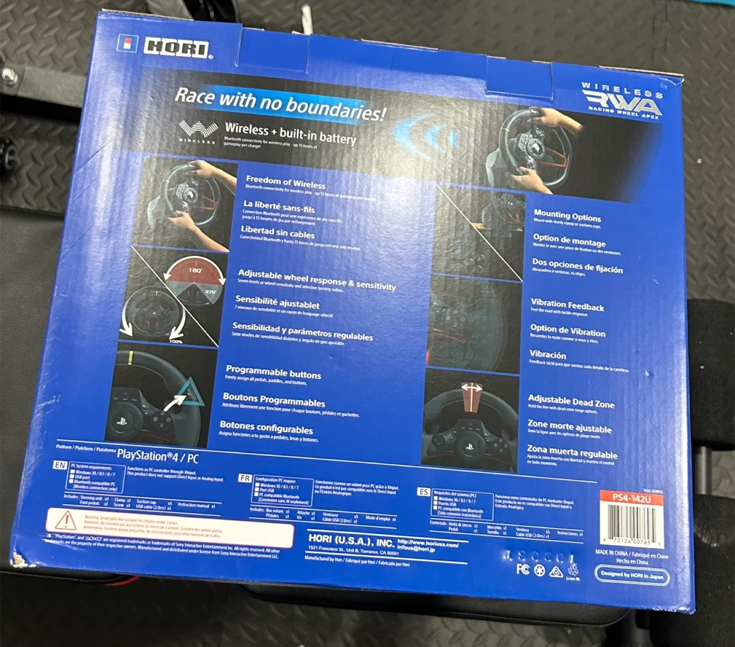 18Selling a brand new HORI Wireless RWA Racing Wheel Apex, compatible with PlayStation 4 and PC! It comes in its original box. Key features include: - Wireless connectivity for up to 15 hours of gameplay per charge - Adjustable wheel response and sensitivity - Programmable buttons - Vibration feedback for a more immersive experience