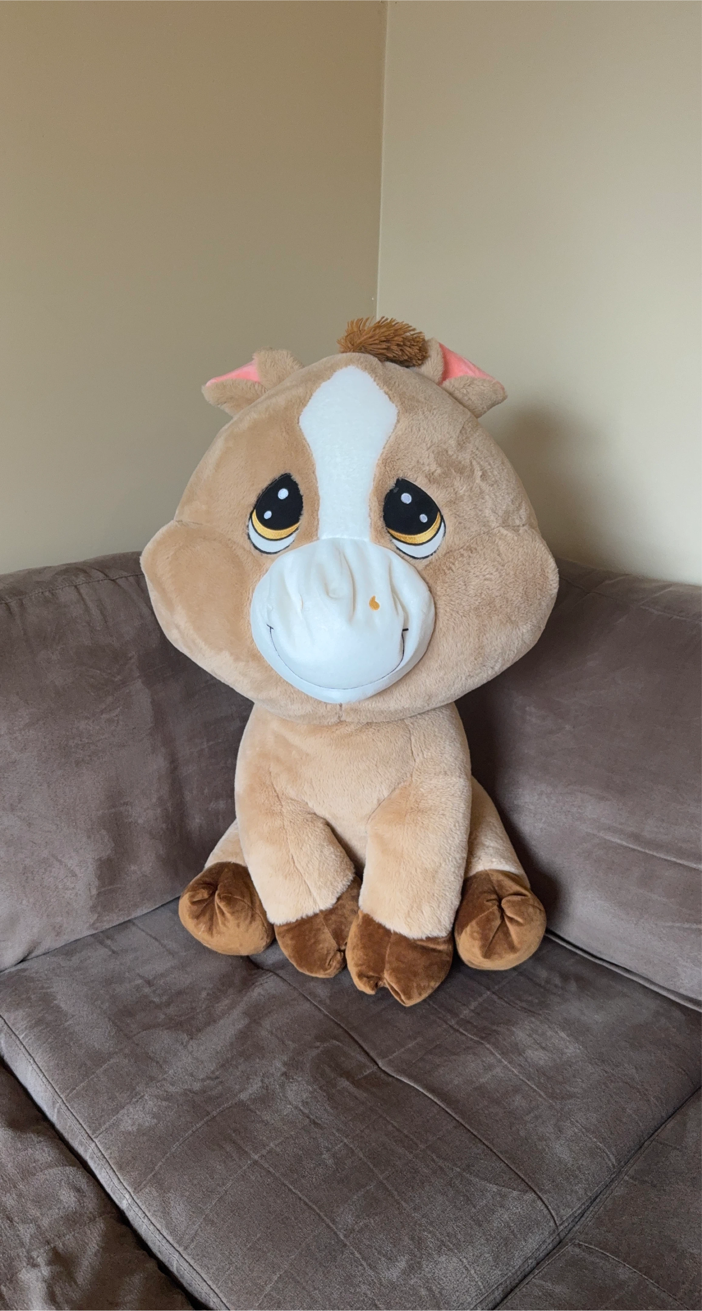 2630”tall Foam inside a cute, cuddly horse plush toy looking for a new home! It's in great condition and ready to be loved by someone new Foam bits filling inside