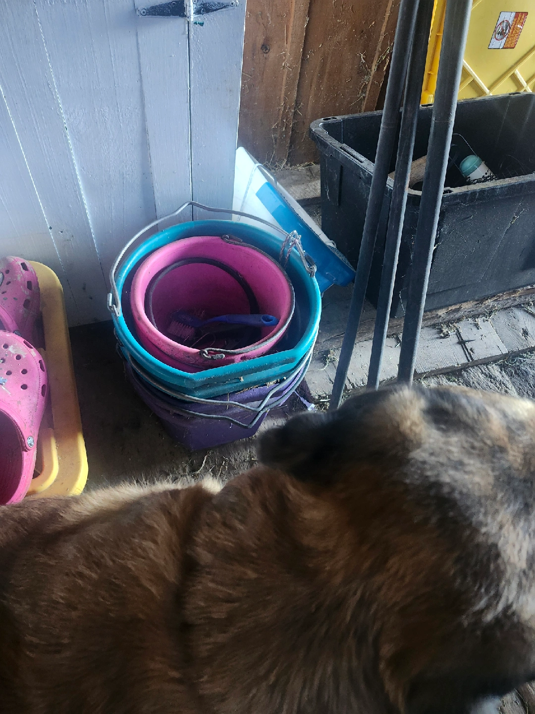 Horse water buckets 4 plus a small feed buckets $40 for all