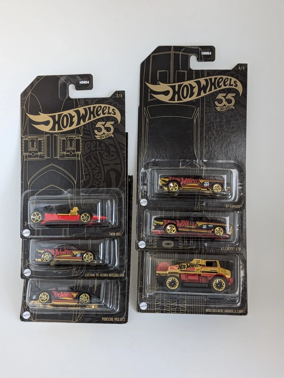 65Selling a Hot Wheels 55th Anniversary collection set. With chase car - Mercedes unimog. Perfect for collectors!