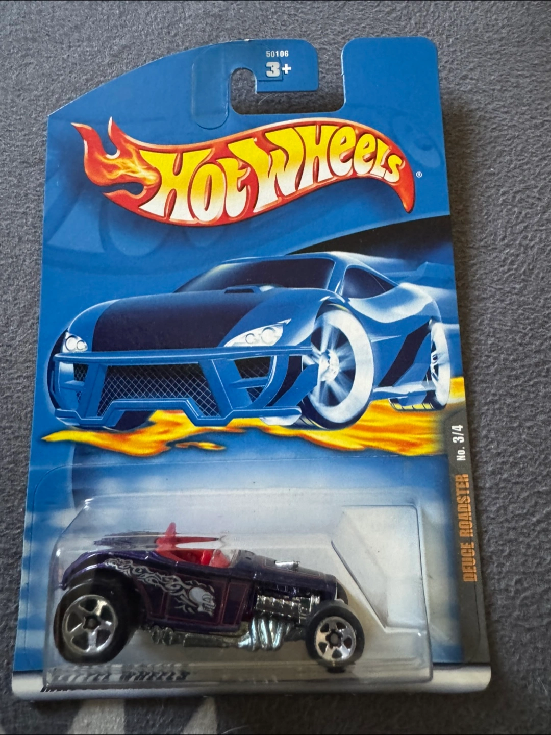 Selling a Hot Wheels Deuce Roadster, number 3/4 in the series. It's still in its original packaging, so it's in great condition. Perfect for collectors or kids aged 3 and up!
