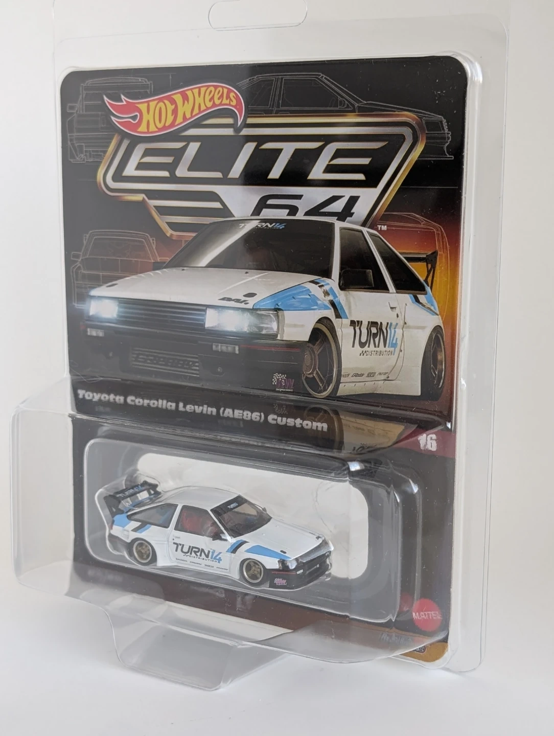 Selling a Hot Wheels Elite 64 Toyota Corolla Levin (AE86) Custom diecast car. It's in great condition and comes in its original packaging. A must-have for any Hot Wheels collector!