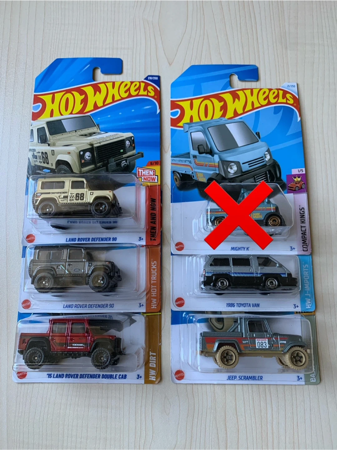 All cards are not mint (more pictures are available upon request) ✅ Land Rover Defender 90 (Beige) ✅ Land Rover Defender 90 (Grey) ✅ ‘15 Land Rover Defender Double Cab ❌ Mighty K ✅ 1986 Toyota Van ✅ Jeep Scrambler $5 each Discount if buying 2 or more Pickup in Markham - Woodbine & 16th area Feel free to check out my other listings