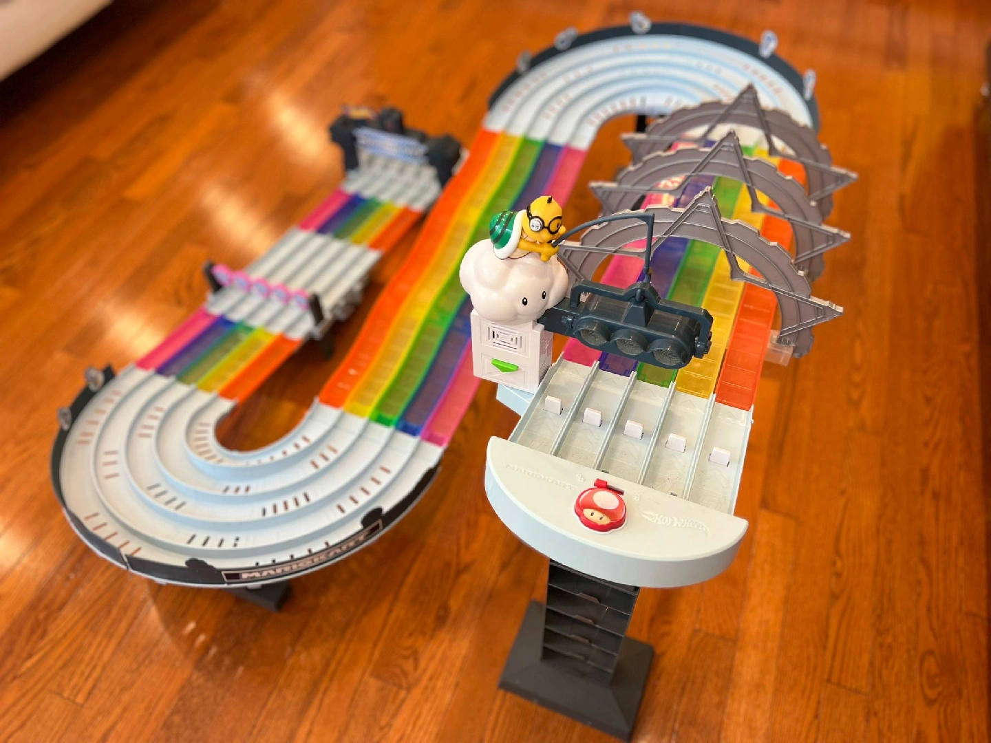 60Selling a Hot Wheels Mario Kart Rainbow Road Raceway! It's in great shape and ready for some racing action. Comes with a bunch of Mario Kart racers too! (9 racers as shown)
