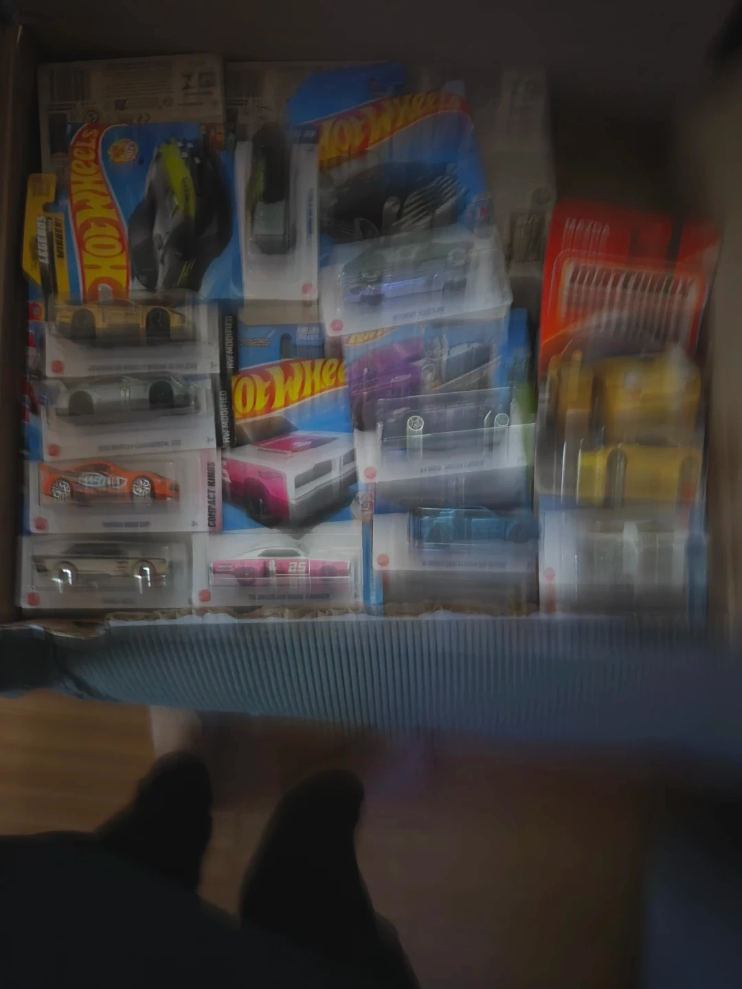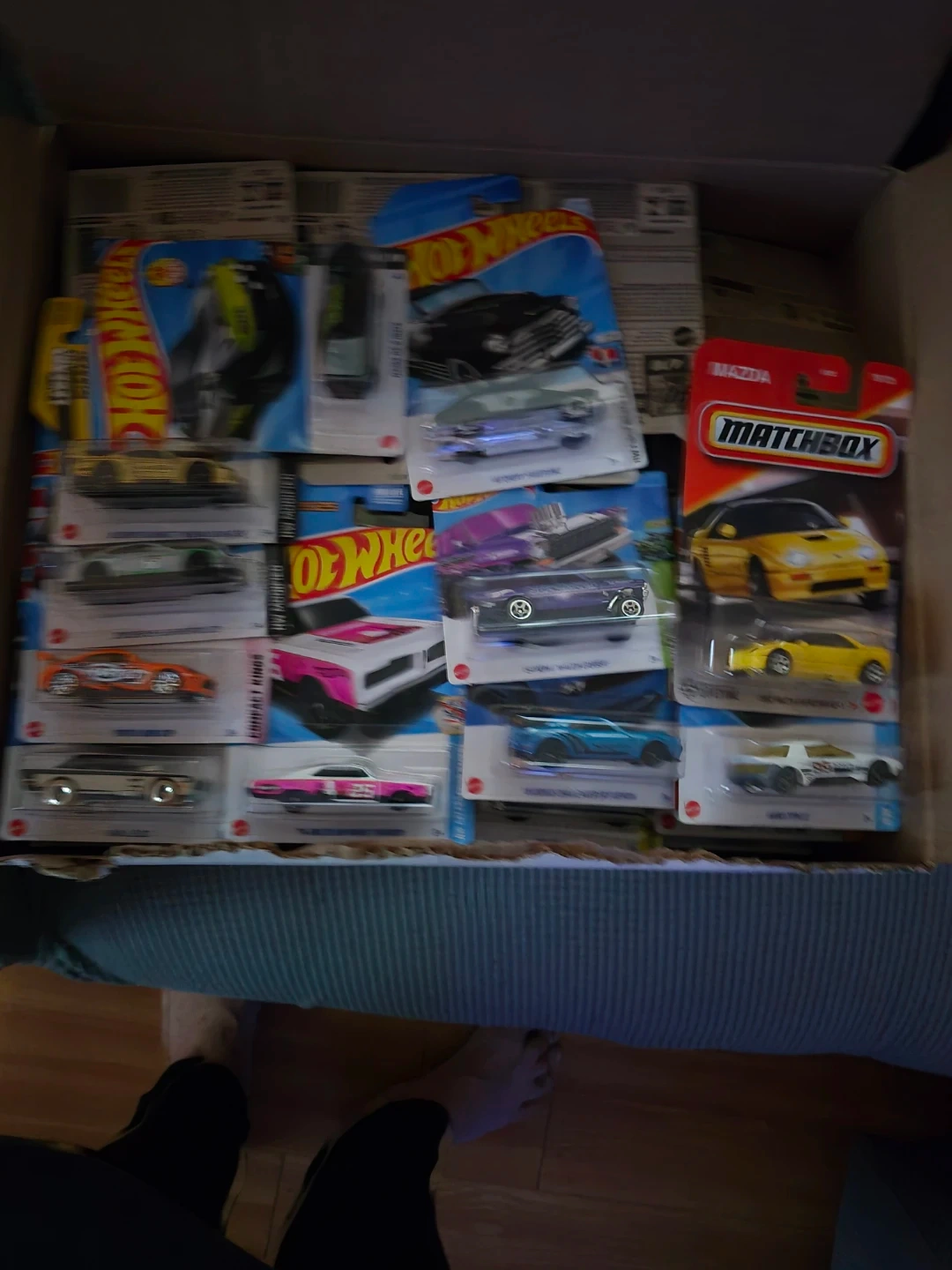18A collection of Hot Wheels and Matchbox diecast cars, all in their original packaging. Great for collectors or kids who love playing with toy cars! There is 100.