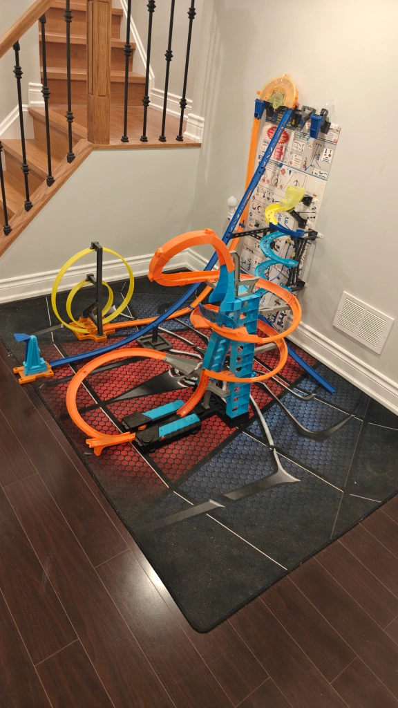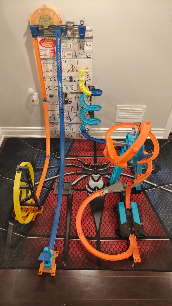 15Hot Wheels Track Builder Unlimited set is ready for a new home! This set offers tons of creative track configurations for hours of fun. It's in great shape and includes all the pieces for building awesome stunts and races The spiderman carpet is not included in this offer. It is priced at 30$ seperatly.