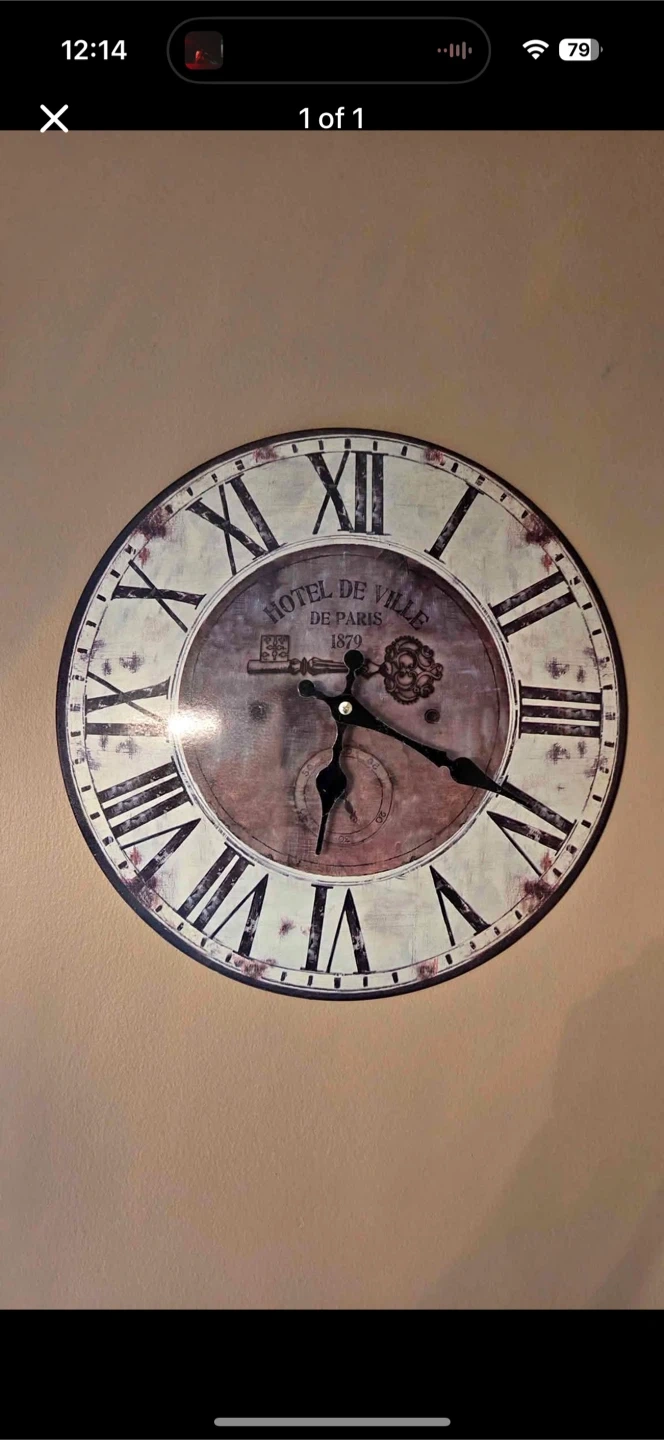 31Selling a charming wall clock featuring a Parisian 'Hotel de Ville' design! It adds a touch of vintage elegance to any room with its Roman numerals and decorative key emblem