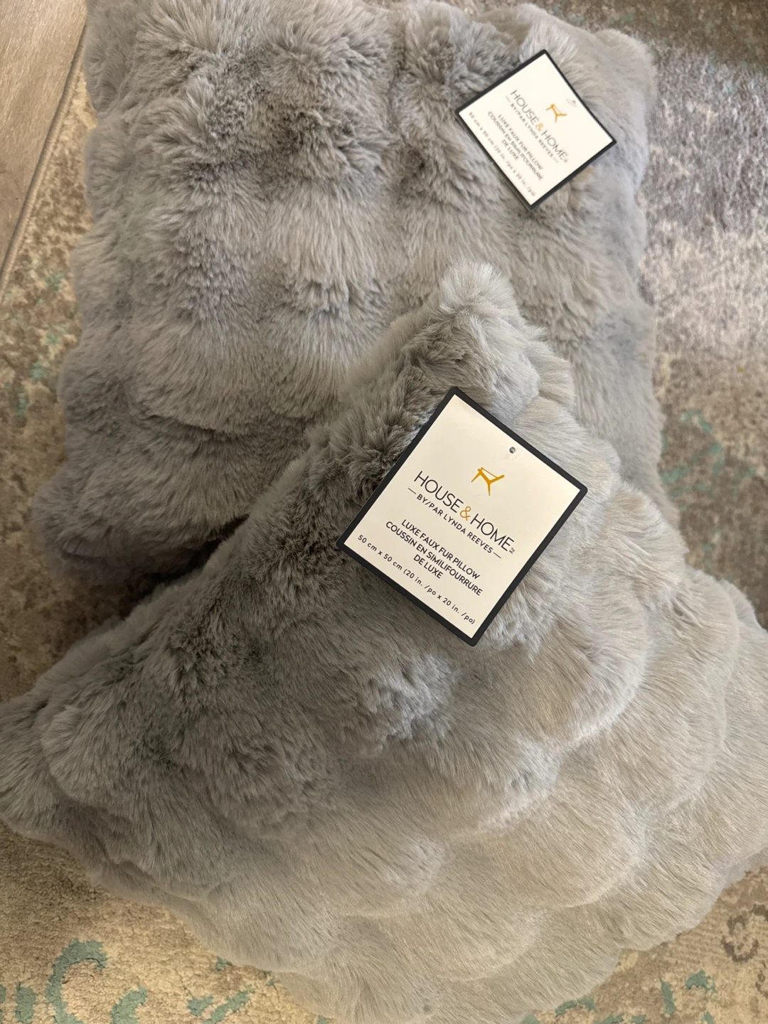 73Brand new HOUSE & HOME Luxe Faux Fur Pillows are super soft and in great condition! They measure 50 cm x 50 cm (20 in x 20 in) I got the brown ones as well!