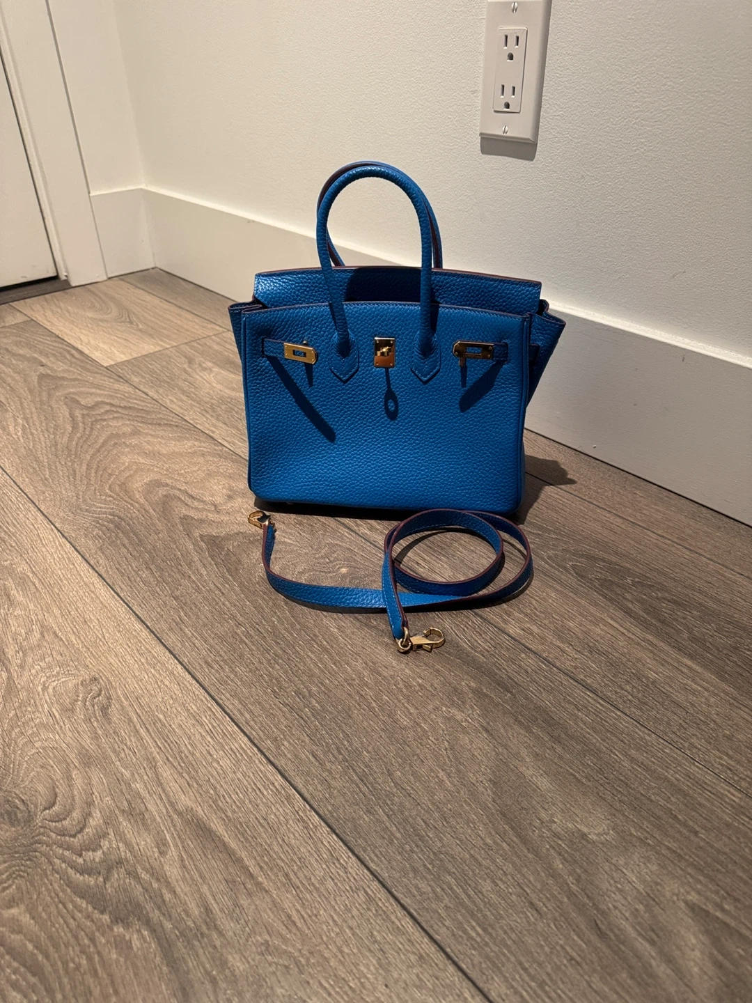 89Selling a beautiful House of hello 25 handbag in a stunning Blue Brise colour! It comes with its shoulder strap. This iconic bag is crafted from high-quality leather, making it a timeless addition to any wardrobe