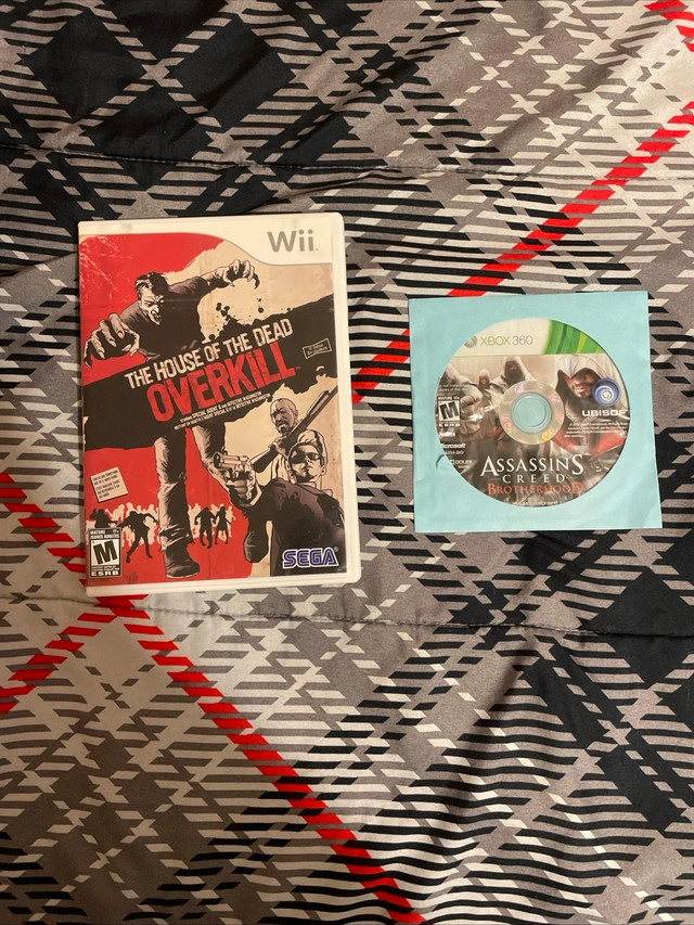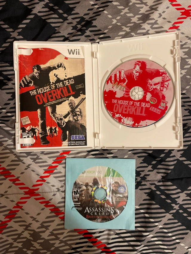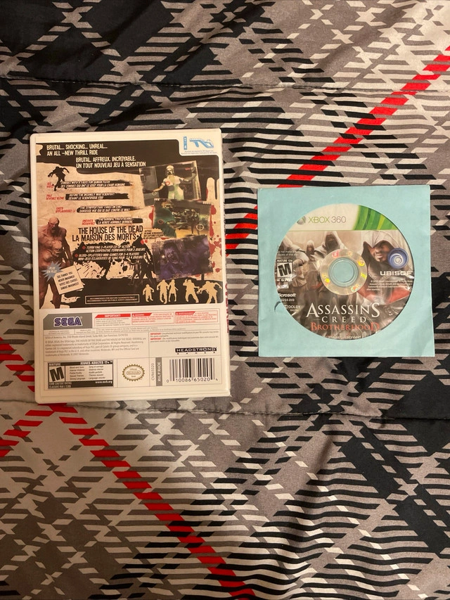 House of the dead comes complete while Assassins creed brotherhood comes disc only. Both games have been tested and work flawlessly.