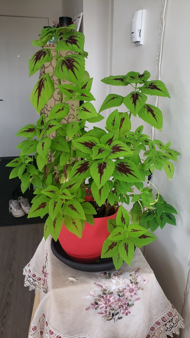 Four healthy houseplants for sale. Includes a Monstera deliciosa, a variegated rubber plant, a Coleus plant, and a Dracaena marginata. All potted and ready for your home. Great for adding some greenery to your space.