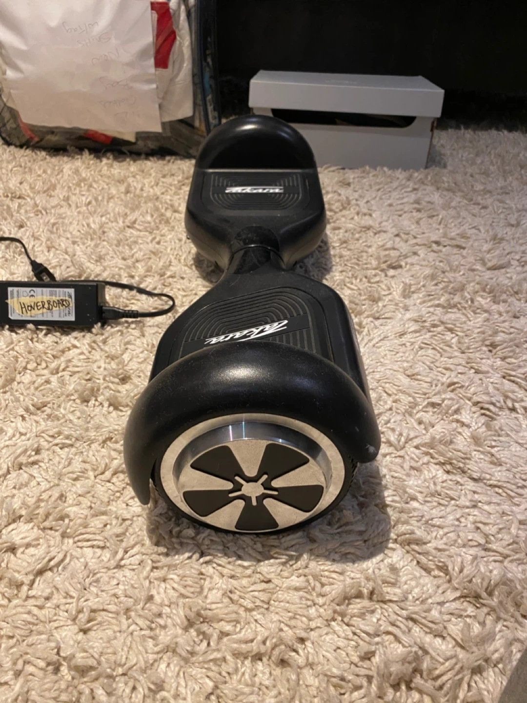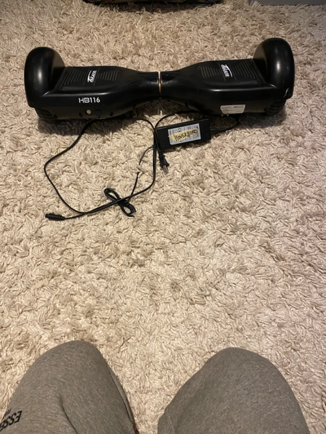 Selling a black Hoverboard, model HB116. It comes with its charger. It's in good condition and ready for some fun!