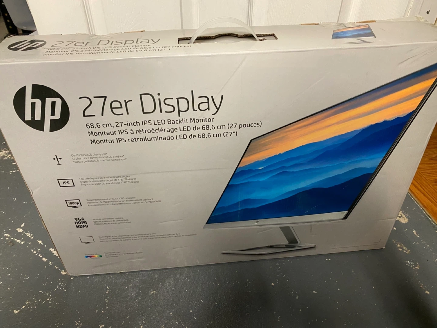60Selling an HP 27er 27-inch IPS LED Backlit Monitor. The box includes the monitor and all original components.