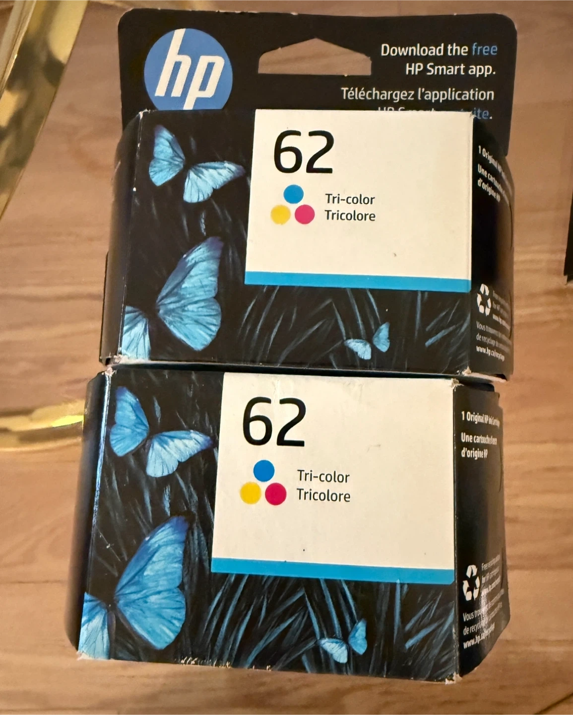Selling a brand new HP 62 tri-color ink cartridge! It's still in the original packaging, never been opened. Perfect for your HP printer! One for 9