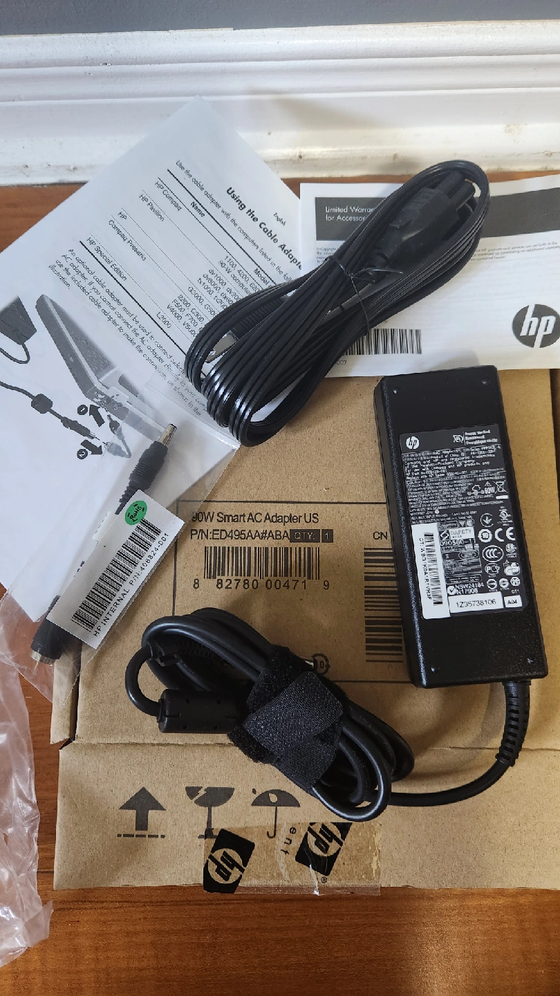 HP 90W AC Adapter. Original HP and not aftermarket brand. New never used except to test once. Specs and HP laptop compatibility are in the pictures. Asking $25