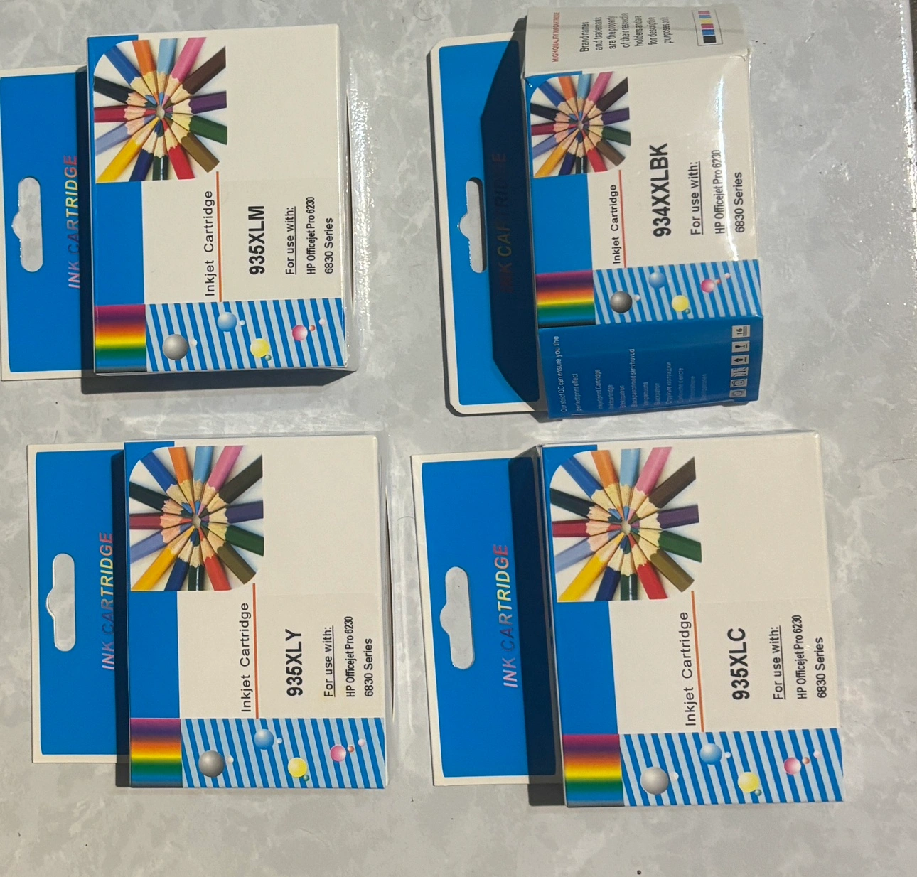 12Set of 4 ink cartridges: black, blue , red and yellow. I just got them to try for my printer but they didn’t work they are new and full of ink.