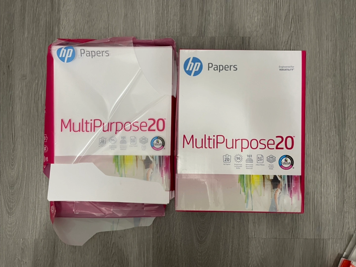 Selling 1.5 packages of HP MultiPurpose20 paper. Great for everyday printing needs! Each package contains 500 sheets of 8.5" x 11" paper.