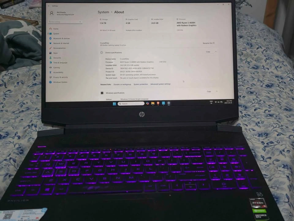 0HP Pavilion Gaming 15 laptop 15.6 inch 144hz screen 24GB RAM (originally came with 8gb) 4GB NVIDIA 1650ti graphics card 256GB SSD + 1TB HDD Ryzen 5 processor Backlit keyboard Laptop is in perfect condition with no defects or issues. Performance good enough to run Adobe Premiere Pro and DaVinci Resolve! Please only send reasonable offers!