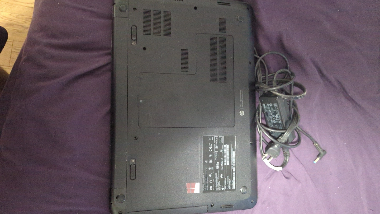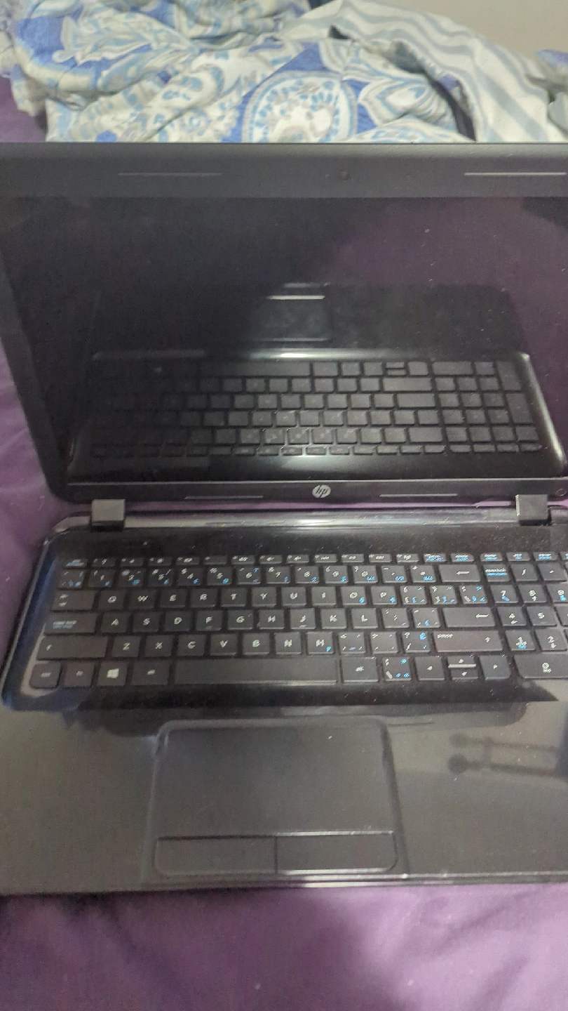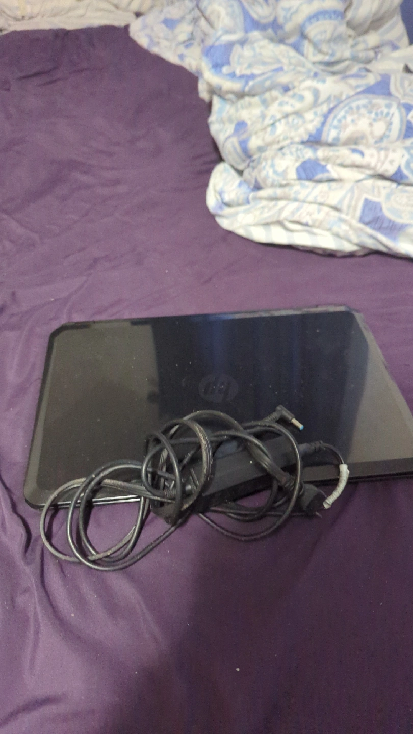 Selling a black HP laptop. It comes with a charger. It's in used condition, but still works great!