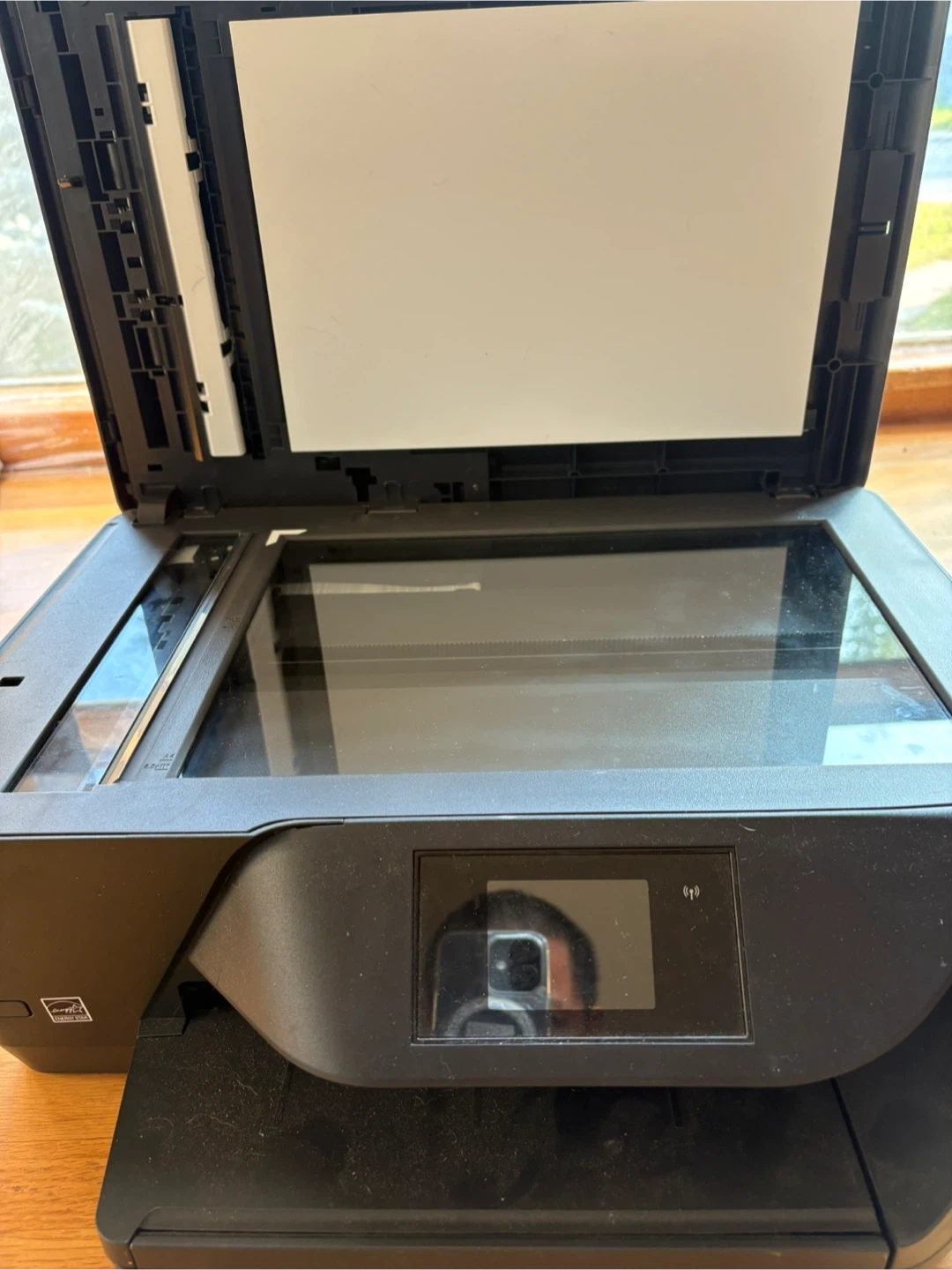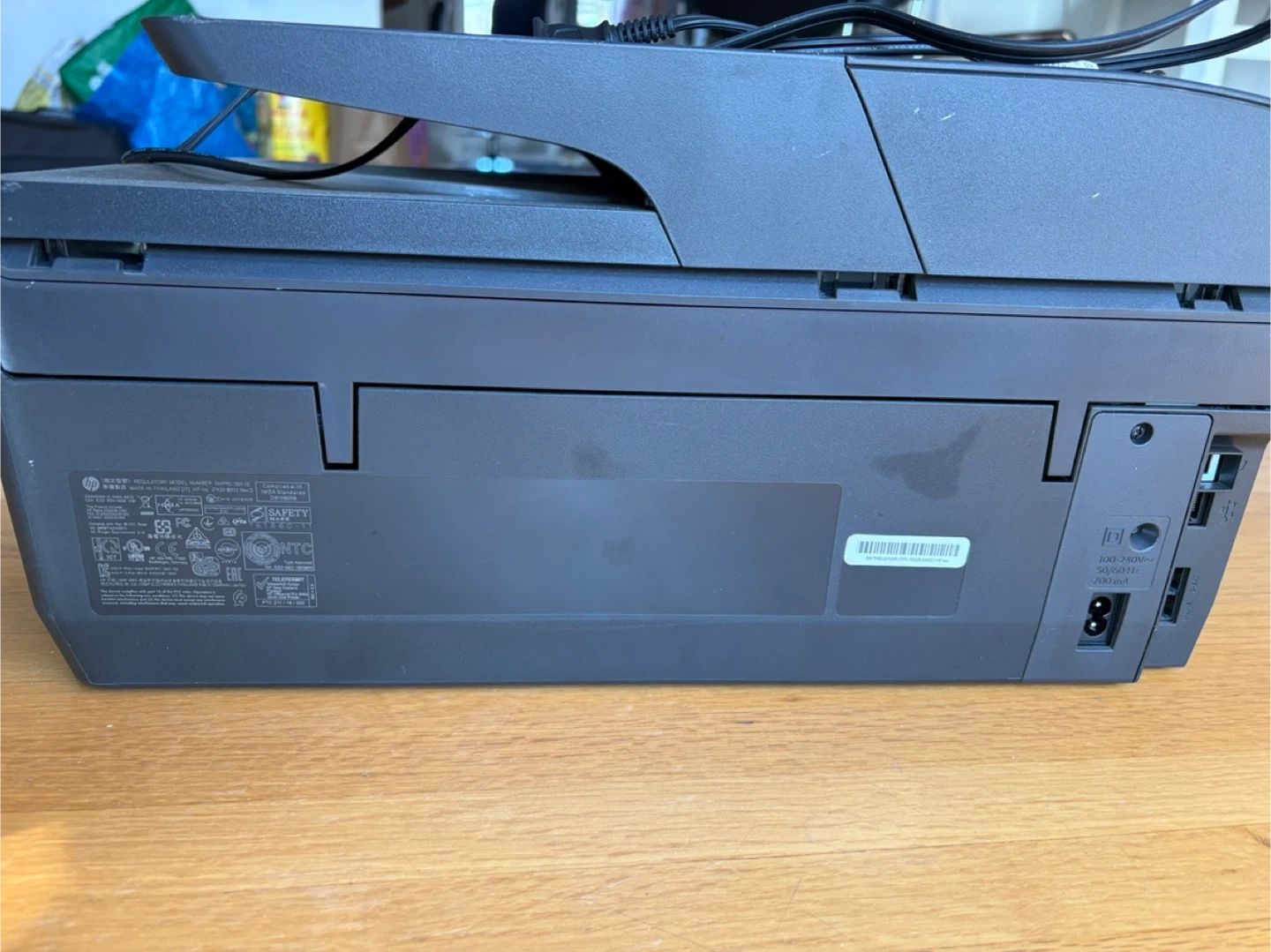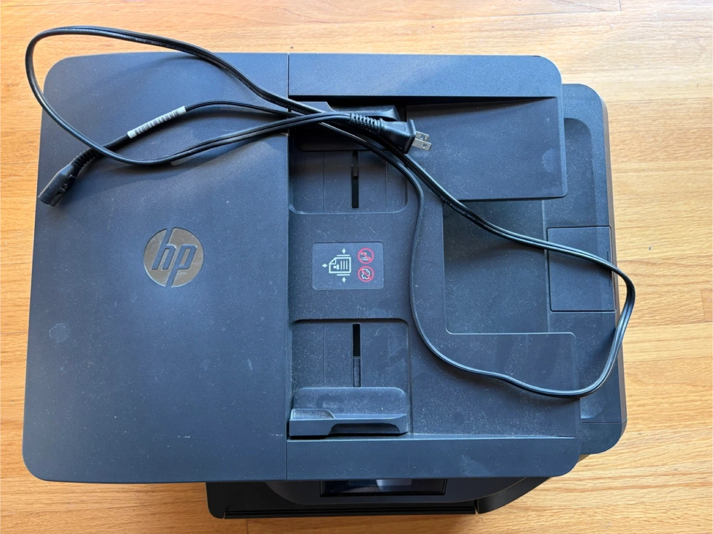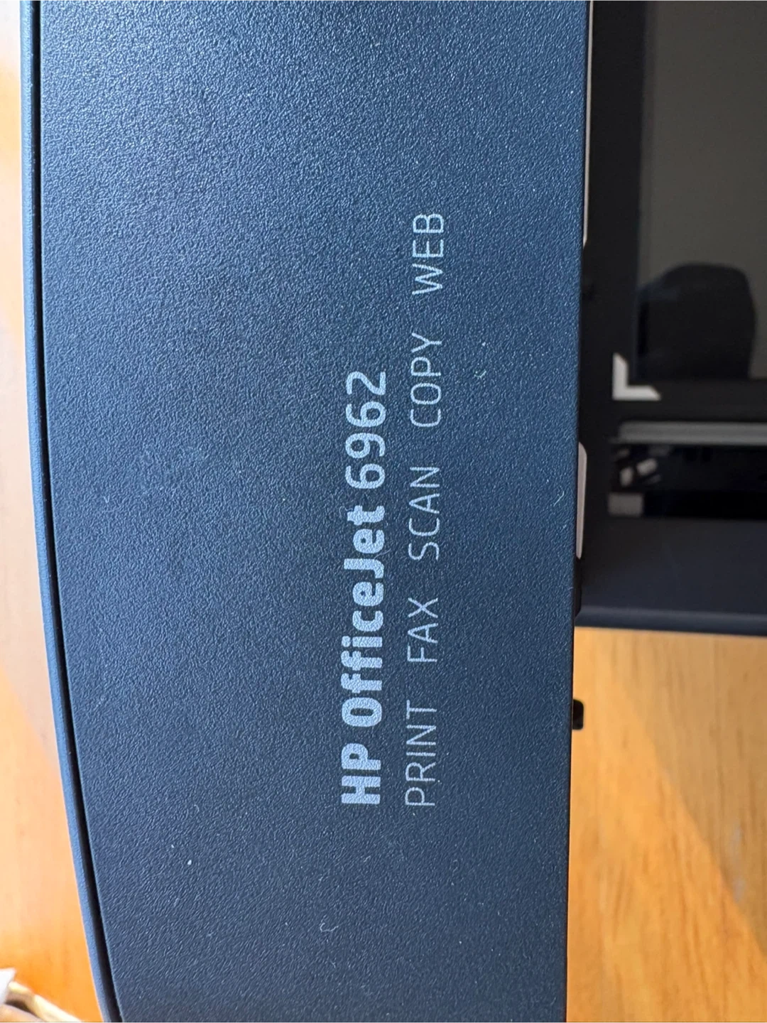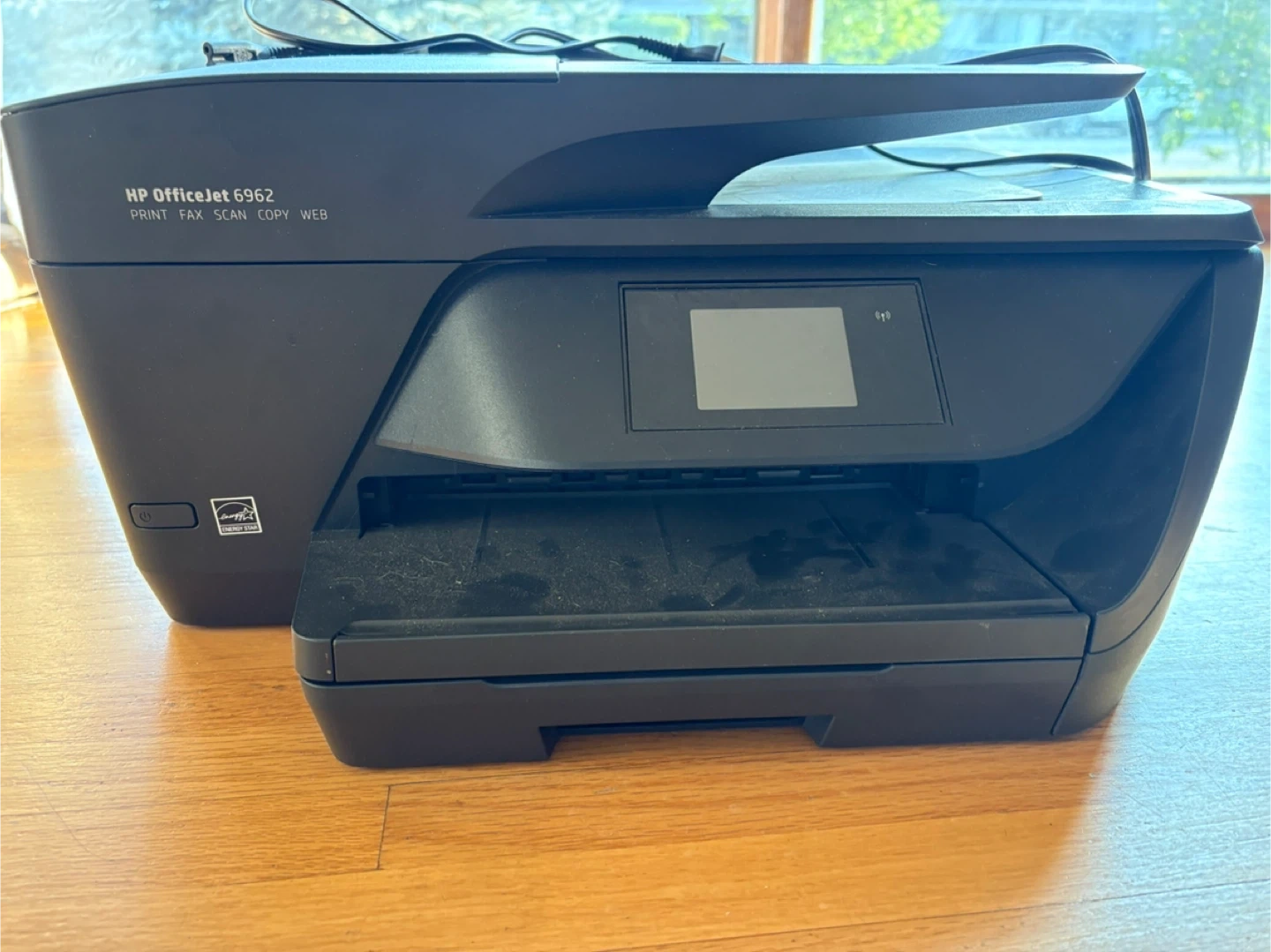 Selling an HP OfficeJet 6962 printer. It can print, fax, scan, copy, and connect to the web. It's in good working condition and ready for a new home!