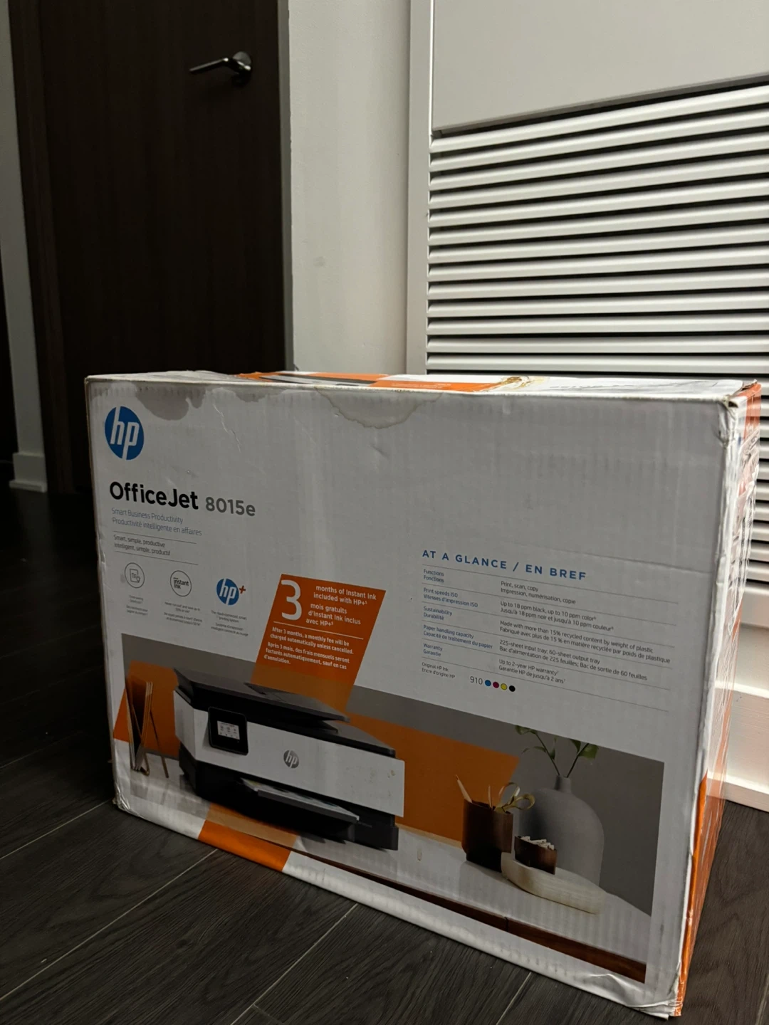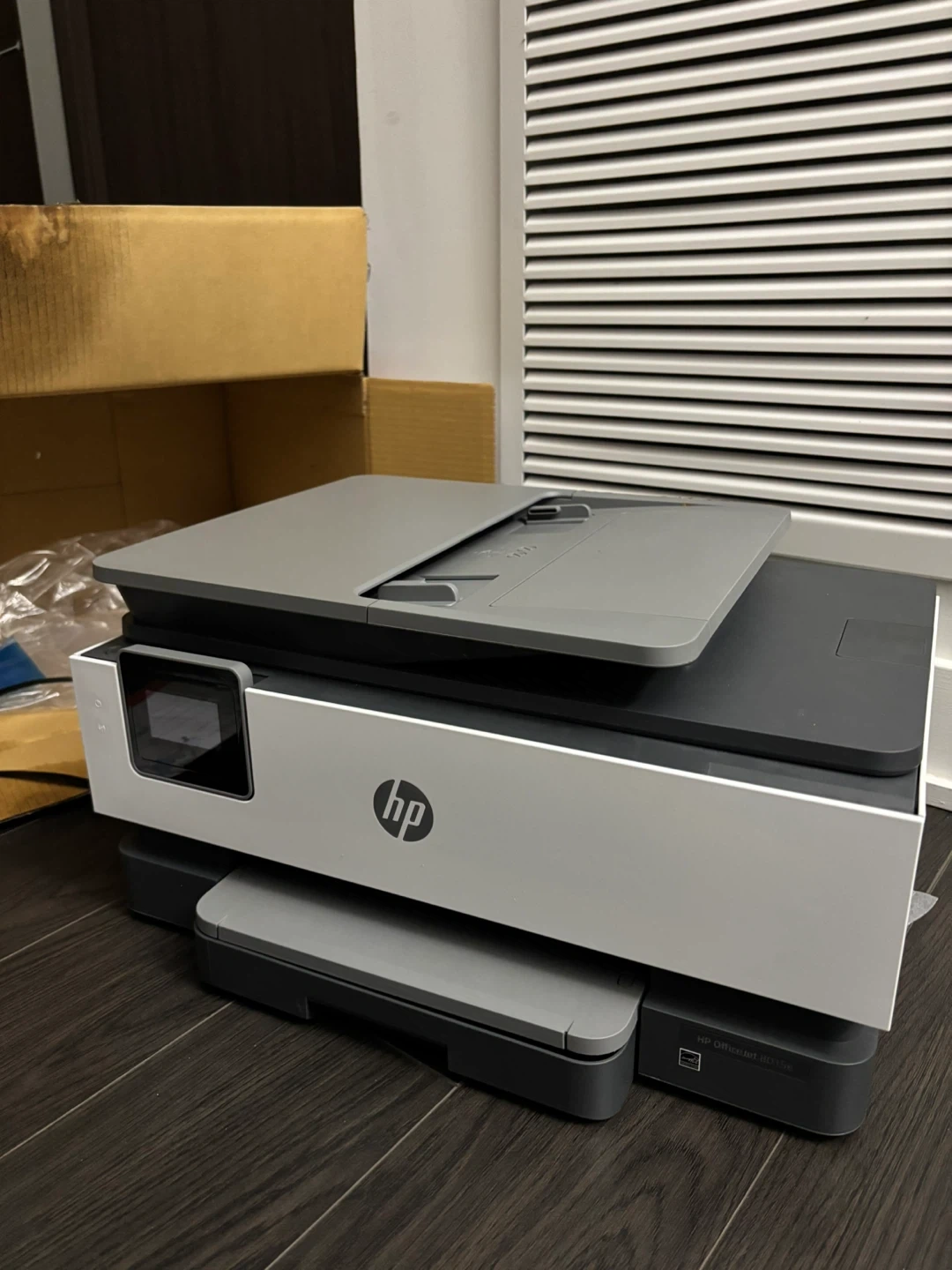 10Selling an HP OfficeJet 8015e All-in-One Printer in excellent condition! It's a versatile printer that can handle all your printing, scanning, and copying needs. Comes with the original box