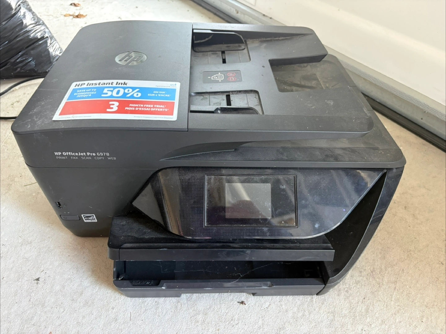 Selling an HP OfficeJet Pro 6978 printer. It can print, scan, copy, and connect to the web. It's a bit dusty but still works! Taking offers ONLY