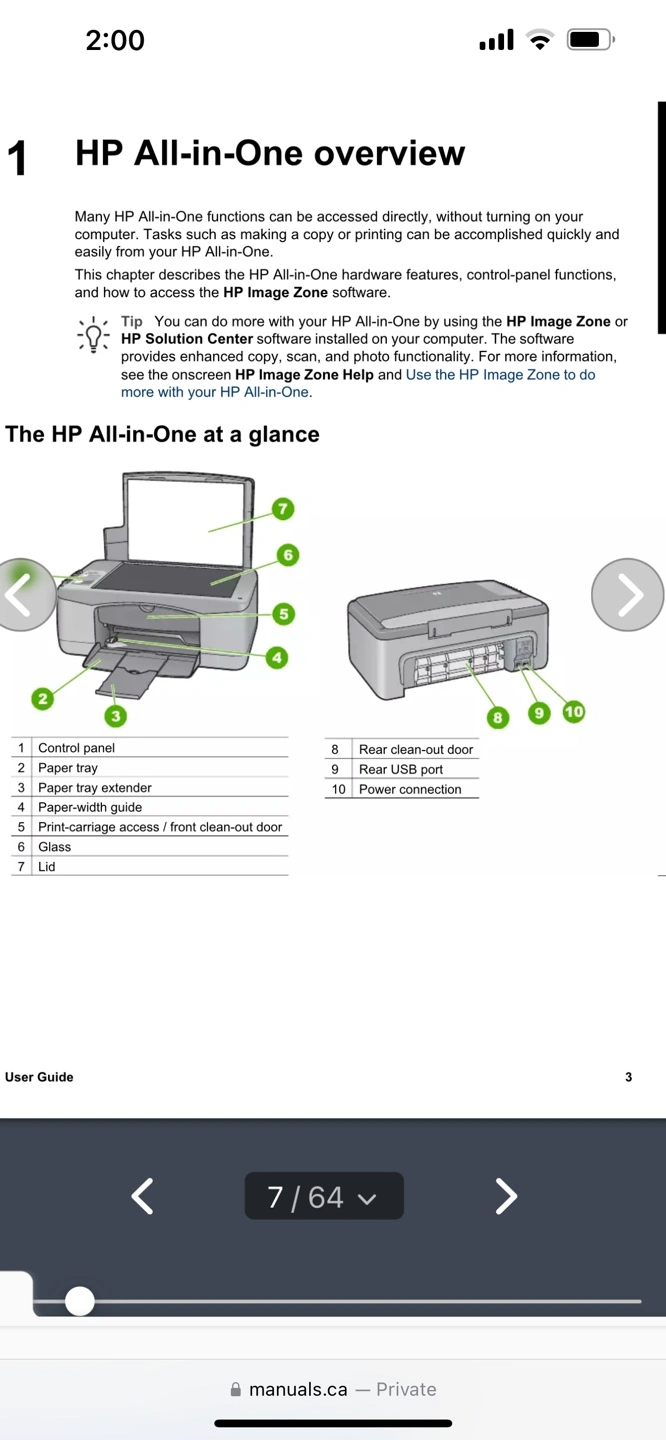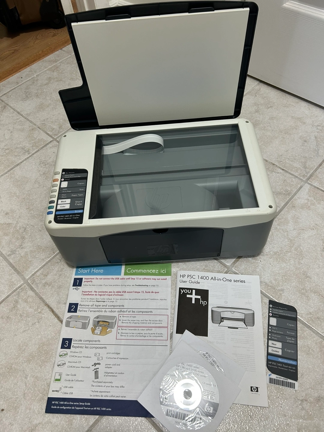 Used HP PSC 1400 All-in-One printer. Includes user guide and software CD. Good condition. Scans, prints, and copies. For your home or business printing. User manual and disks included. Pick up from Toronto, Ajax Oshawa or Whitby