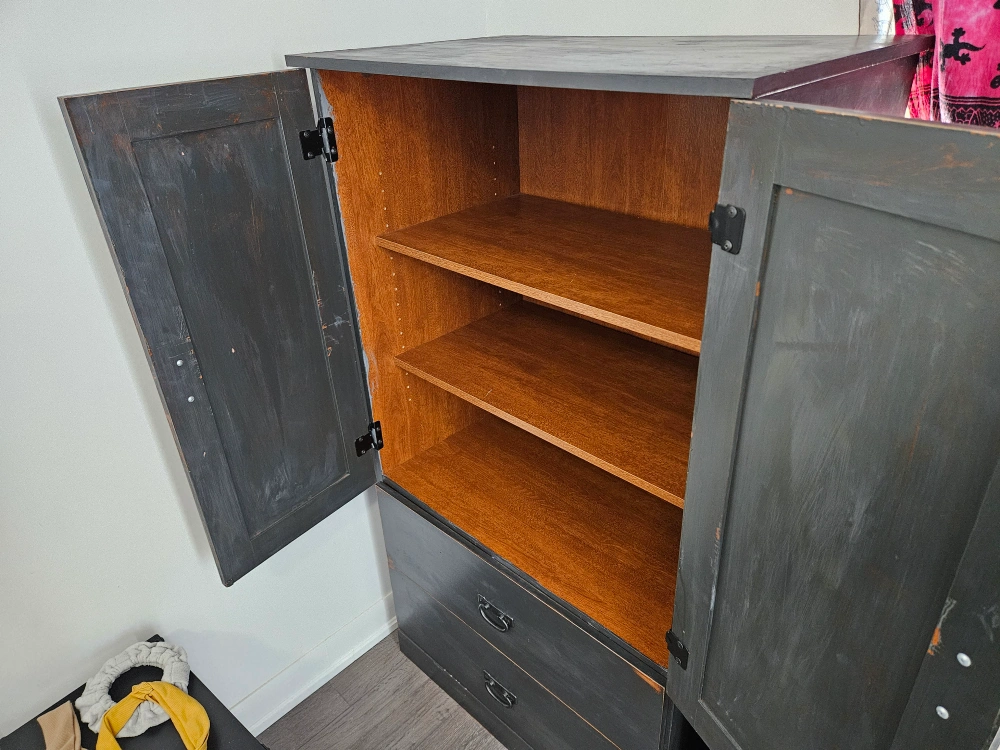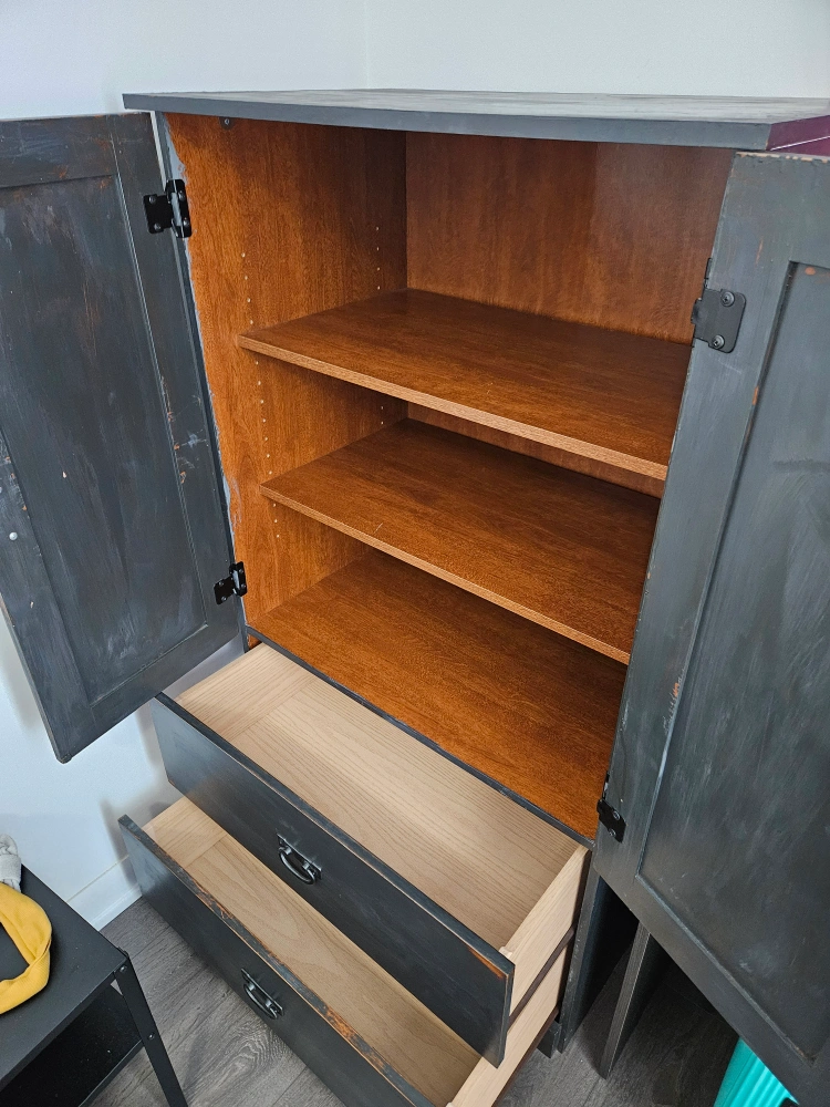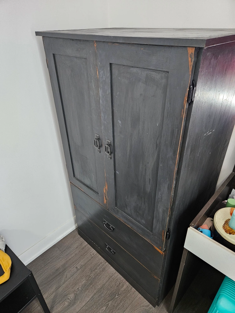 Great matching nightstand in wardrobe, both finished with a rustic slate grey finish. need gone this weekend, price is for both pieces!