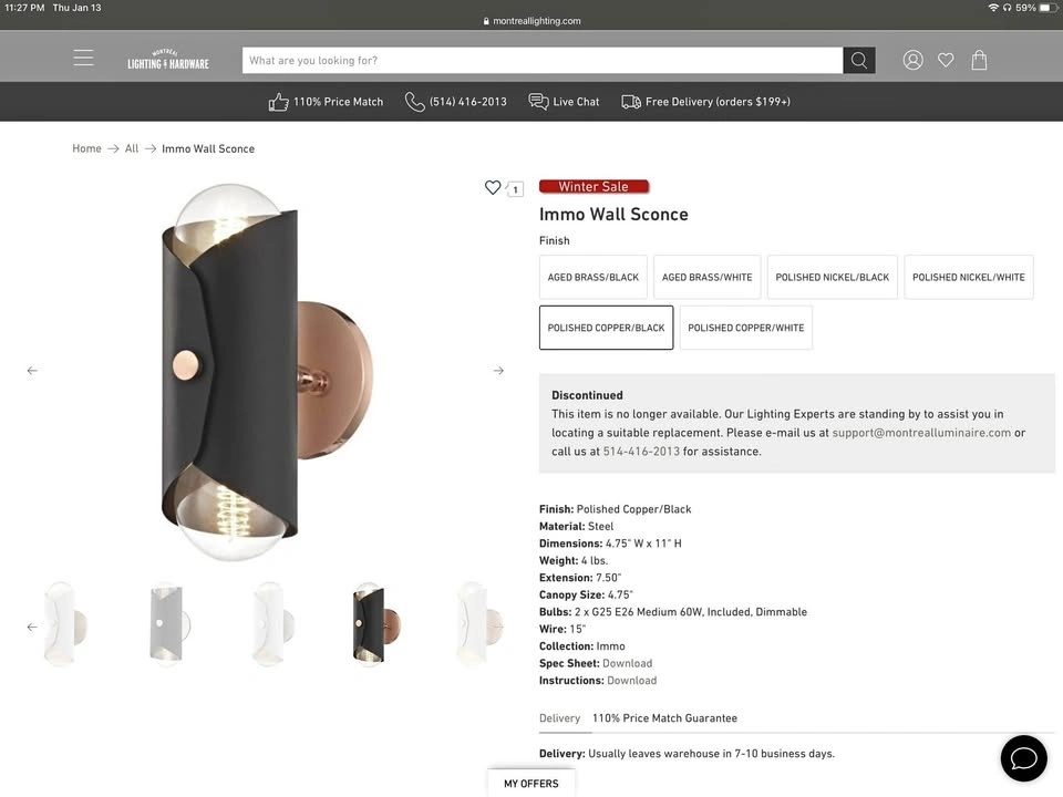 Mid century modern style wall sconce, never installed and still in original packaging. Purchased from LD Shoppe (Judah Sconce, Mitzi range at Hudson Valley Lighting) in 2019 for $270. The colour didn't suit.